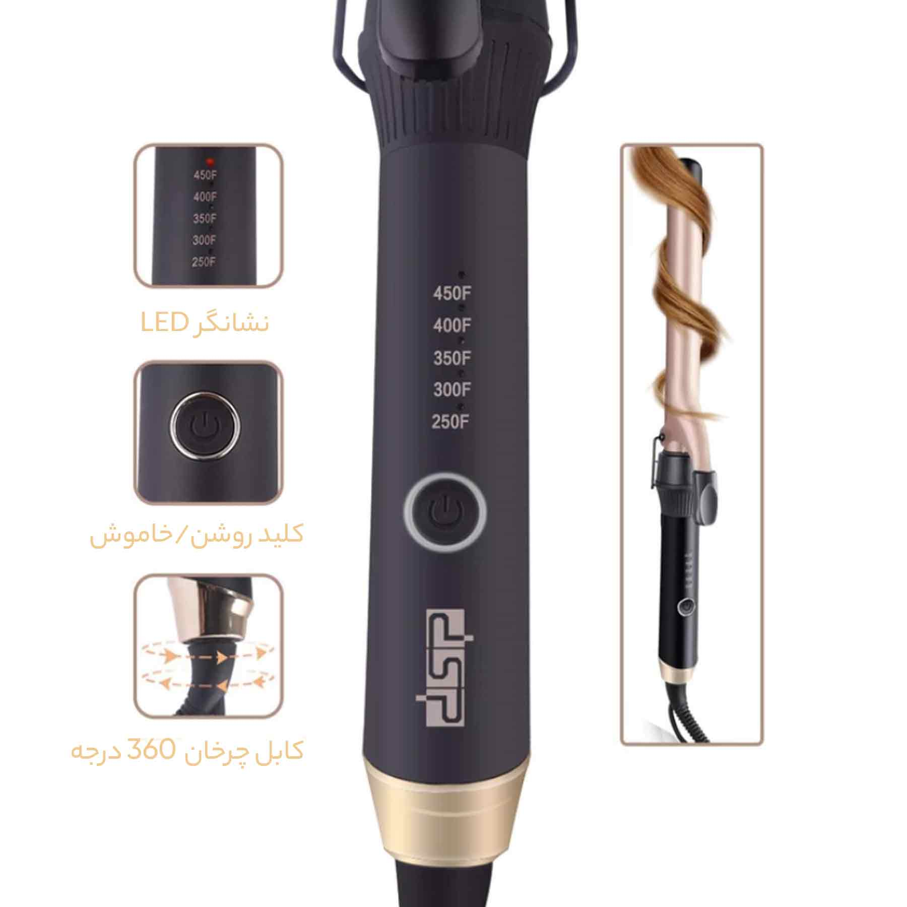 سیم دستگاه فر مو ۹ میلی متری DSP 20105 در محل اتصال به بدنه دارای قابلیت چرخش کامل می باشد که علاوه بر آن که امکان کار کردن آسان را فراهم می کند از پیچ خوردن و فرسودگی سیم نیز جلوگیری می نماید.