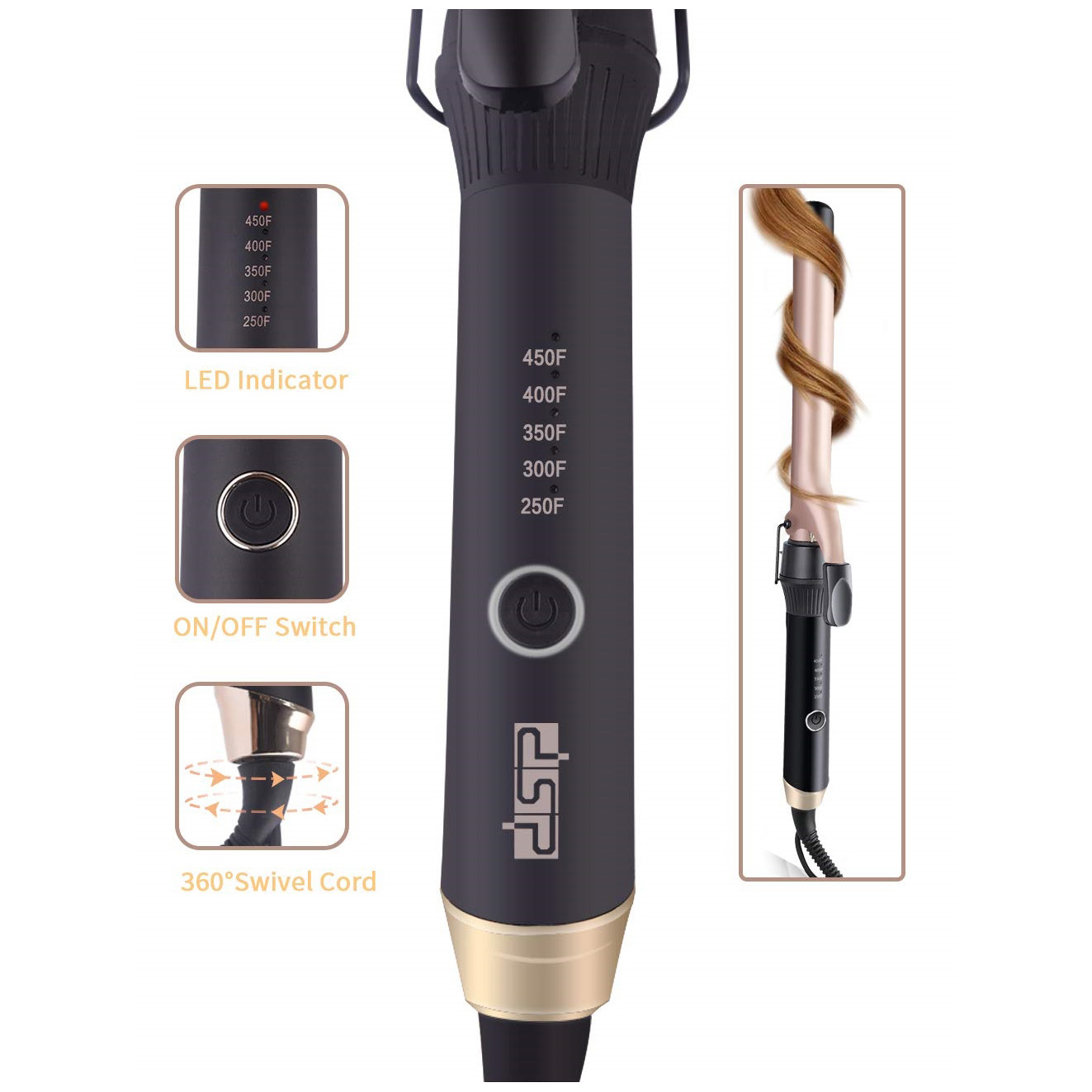 .فر مو ۹ میلی متری دی اس پی دارای قابلیت تنظیم ۵ دمای مختلف است و درجه فارنهایت می باشد، که بسته به نوع مو می توان دمای مورد نظر را انتخاب نمود. طیف دمایی ۲۵۰F تا ۳۰۰F مناسب موهای ظریف، دکلره شده و آسیب دیده می باشد.