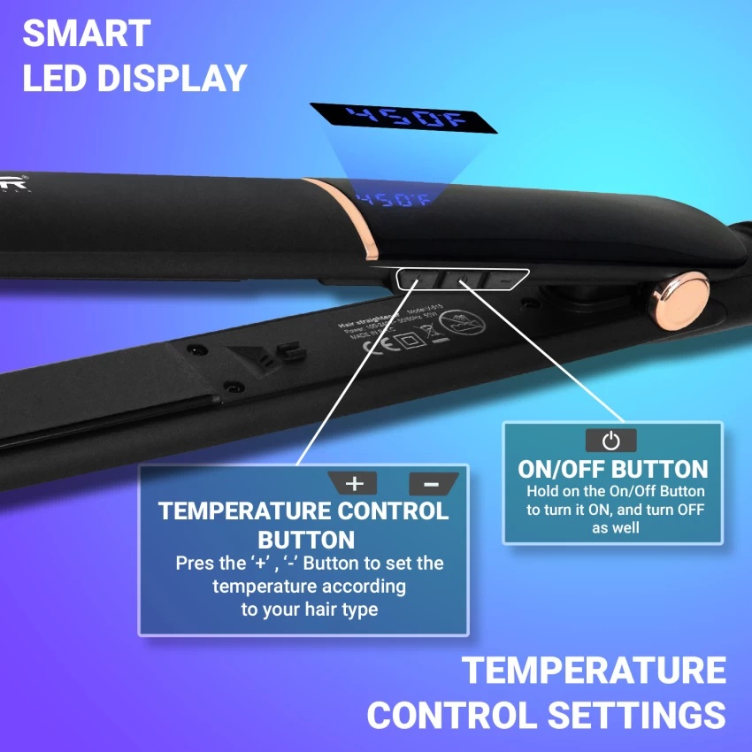 • امکانات دستگاه حالت‌دهنده مو : صفحه نمایش دما