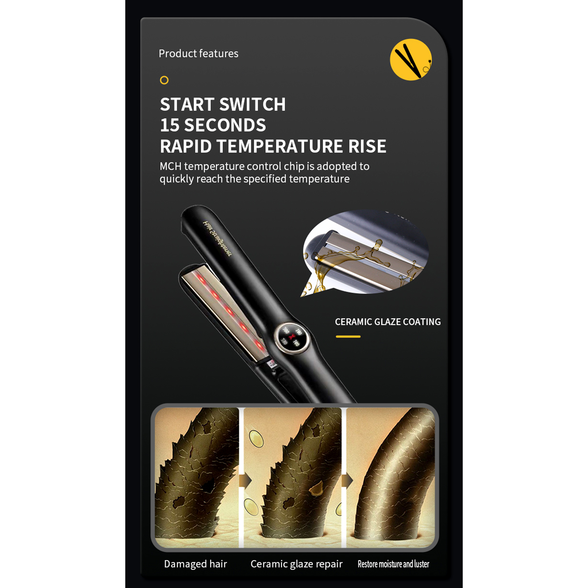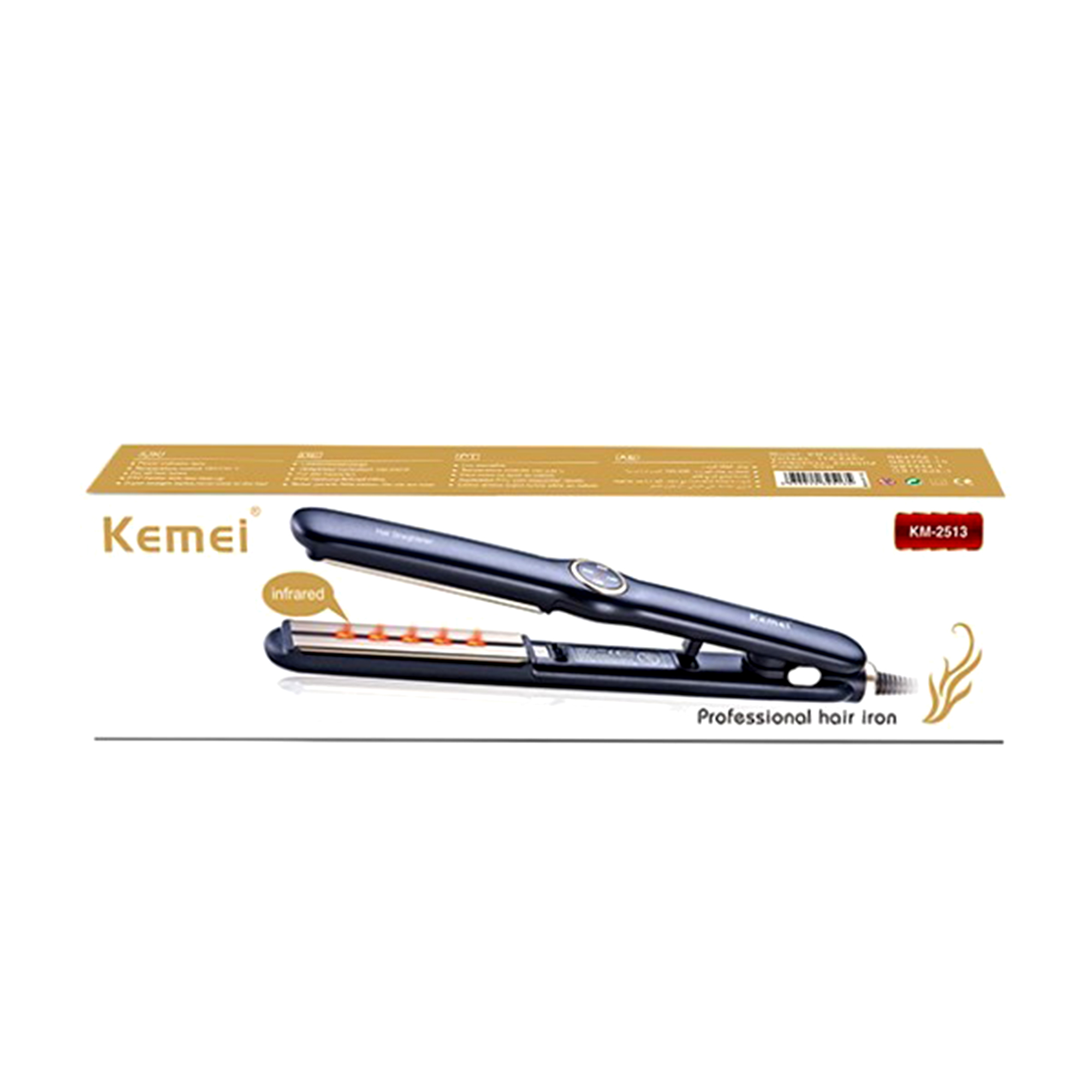اتو موی کیمی مدل KM-2513 دارای صفحات از جنس سرامیک پیشرفته است که جهت کار کراتین و پروتئین در سالن یا برای حالت دادن موهای کراتین شده در منزل می باشد.حرارت دستگاه از 160 تا 230 درجه سانتی گراد برای مدلهای مختلف و انواع جنس مو قابل تنظیم هست. قابلیت ویژه این دستگاه استفاده از فناوری مادون قرمز (Infrared) بوده که باعث می شود گرما به داخل قشر و پوسته مو نفوذ کند در حالی که یکپارچگی مو حفظ شود. اشعه های مادون قرمز علاوه بر از بین بردن موخره باعث می شوند تا مو، گند زدایی و میکروب زدایی شود و باعث می شود تا پوسته مو صاف تر و فشرده تر شود ، در نتیجه، در هر بار مصرف ، مو ، براق تر و سالم تر به نظر می رسد. این اتوی مو ابزاری عالی برای انواع مختلف مو می باشد و مخصوصا در مورد موهای ضخیمتر و یا موهای رنگ شده بسیار مفید است. اندازه صفحه اتو موی کیمی مدل KM-2513 در ابعاد پهن طراحی شده تا مناسب صاف کردن و خوش حالت کردن موهای بلند باشد. KM-2513 دارای المنتی از نوع TCL هست که صفحات را در کمتر از 30 ثانیه به حداکثر دما یعنی می رساند. در یک جمعبندی اتو موی KM-2513 با طراحی ارگونومیک که بسیار خوش دست می باشد و با تکنولوژِی مادون قرمز و اندازه صفحات پهن از جنس سرامیک پیشرفته که در کمتر از 30 ثانیه آماده کار می شود، بسیار عالی و مناسب برای کار در هر اندازه مو می باشد که با هر میزان مهارت داشتن در آرایش مو می توان با آن کار کرد و از کار کردن با آن لذت برد.