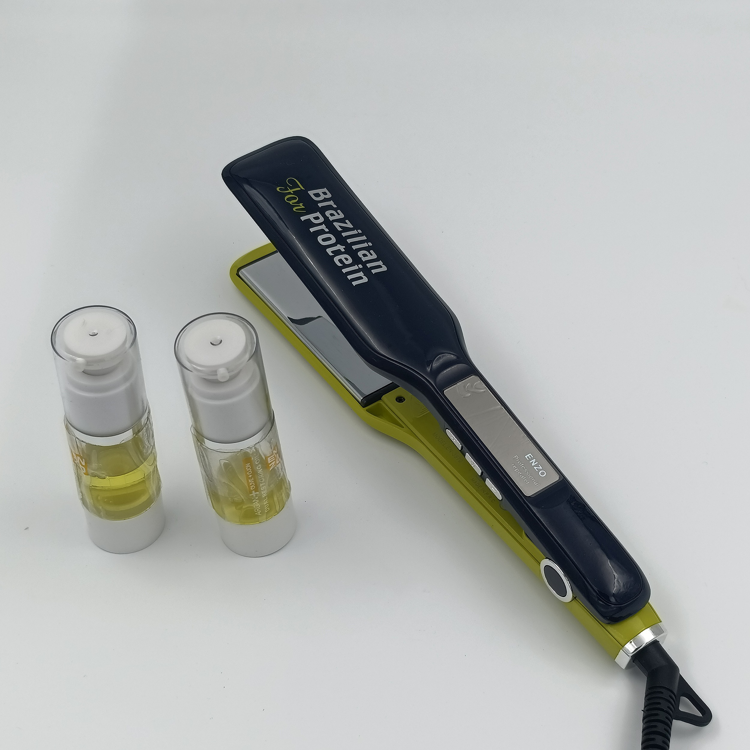 مخصوص کار کراتین و پروتئین صفحه تیتانیوم صفحه پهن تنظیم حرارت از 300 تا 990 درجه فارنهایت صفحات رفلکس و شناور قدرت: 65 وات طراحی ارگونومیک چرخش 360 درجه سیم همراه با دو عدد روغن نیمه پر آرگان 30 میل برزیلی