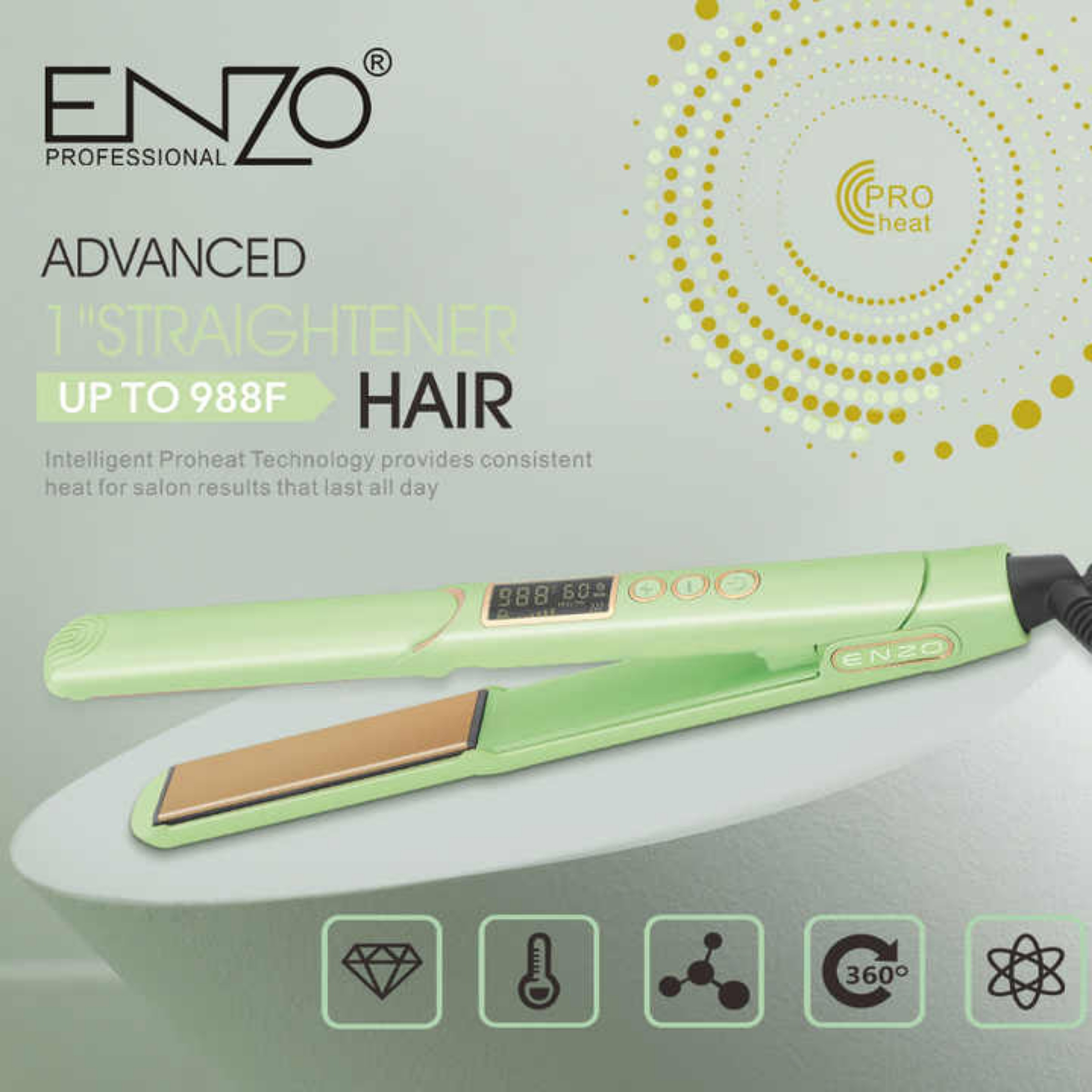 تومو حرفه ای انزو ENZO 3129 اتومو کف سرامیک نانو تولید کننده یونیز مثبت دیجیتالی قابل تنظیم حرارت ترمیم موهای شکسته شده کابل ژله ای چرخش ۳۶۰ درجه داغی تا ۹۸۸ درجه فارانهایت فناوری تورمالین یک فرآیند کریستالی منحصر به فرد است که در ترکیب با گرمای سرامیکی، حجم بالایی از لون های منفی تولید می کند. این فناوری تست شده در سالن، آسیب کمتری به کوتیکولهای مو وارد میکند و ظاهر نهایی صافتر و ابریشمیتری برای موهای شما ایجاد میکند. کنترل دما. این ویژگی به آرایشگر اجازه می دهد تا دمای بهینه را برای نوع مو انتخاب کند تا آسیب را به حداقل برساند و نتایج حالت دادن را افزایش دهد. فناوری نانو نقره ذرات نانو نقره در صفحات مسطح آهن جاسازی می شوند تا از رشد باکتری ها جلوگیری کنند. این ویژگی باعث می شود موهای تمیزتر و سالم تری داشته باشید. سیم چرخشی 360 درجه انعطاف پذیری لازم را برای استایلیست ها فراهم می کند تا بتوانند آزادانه بدون گره خوردن یا آسیب دیدن سیم حرکت کنند. این برای تکنیک های یک ظاهر طراحی پیشرفته امروزی عالی است. فناوری Negative lon اتم هایی را منتشر می کند که می تواند رشد باکتری ها را متوقف کند و در نتیجه مو و پوست سر سالم تر شود.
