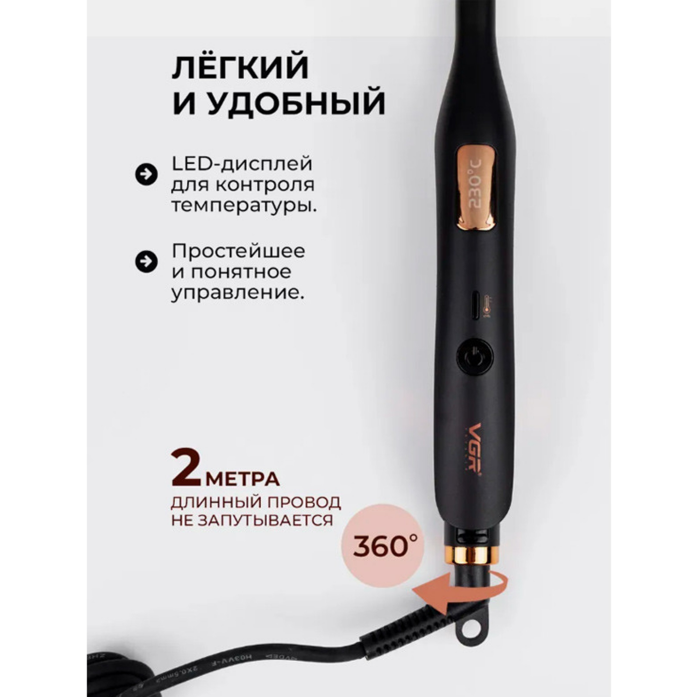 control کنترل دما دقیق قابل تنظیم از 120 درجه سانتیگراد تا 230 درجه سانتیگراد برای انواع مو می باشد.