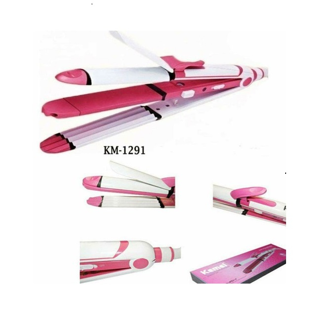 اتو موی سه کاره کیمی مدل kemei km-1291 یک محصول با کیفیت و بی نظیر از کمپانی کیمی در کشور چین با بدنه ای مقاوم در برابر گرما و صفحه ای سرامیکی، مناسب برای سالنهای آرایش و استفاده شخصی خانم ها می باشد، این اتو مو در 14 ثانیه گرم شده و در کمترین زمان ممکن میتوانید موهای خود را صاف کرده و یا آنها را به دلخواه خود حالت دهید، به آسانی قابل حمل بوده و میتوان آن را با خود به سفر برد و چون خاصیت یون سازی دارد باعث درخشندگی و لطافت موها می گردد و هیچ گونه آسیبی به موها نمی رساند. کیمی 1291 دارای طراحی ظریف، شیک و زیبا با دوام بالا و بسیار خوش دست در رنگ سفید و صورتی می باشد.
