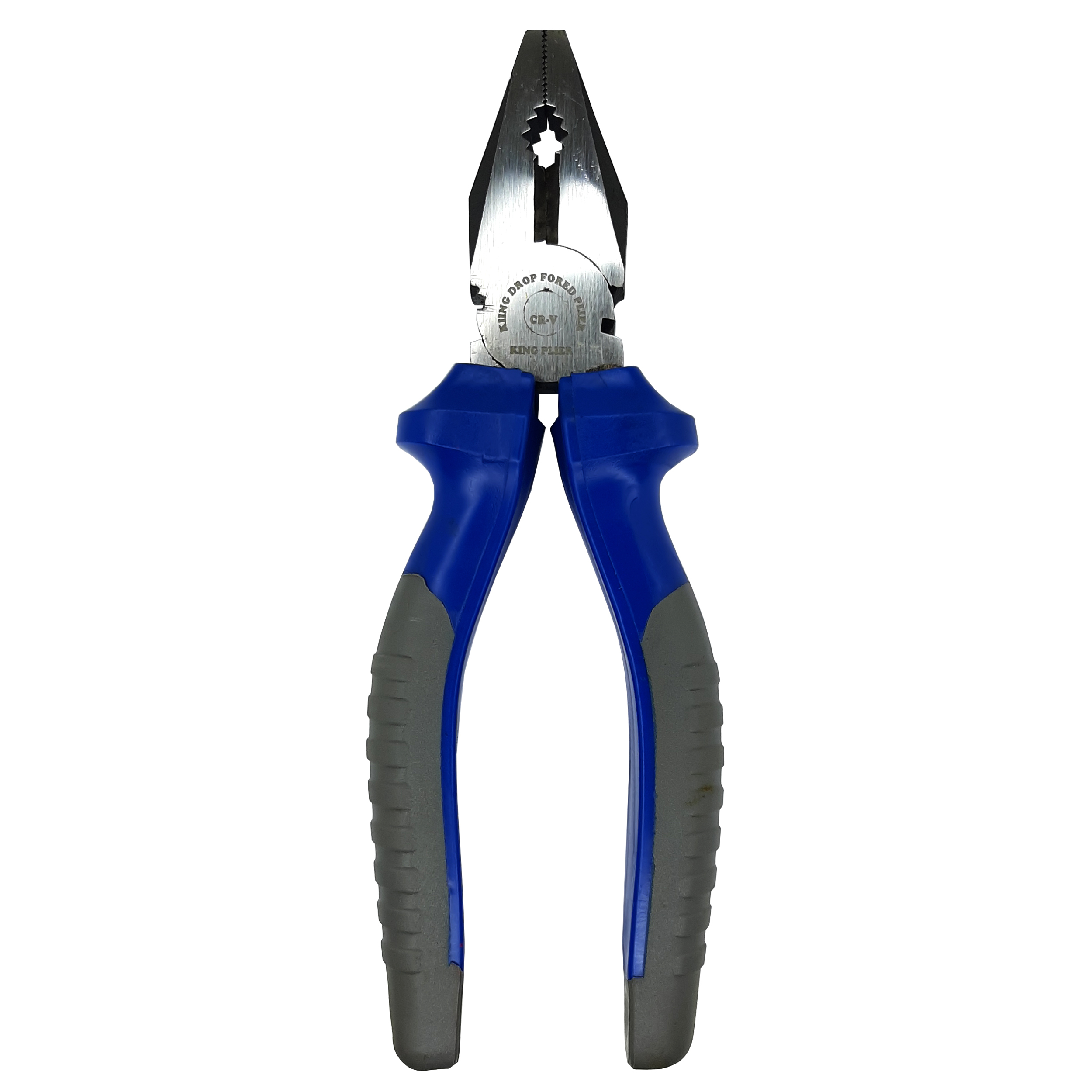 انبردست کینگ پلیر از سایز 8 اینچ معادل 200 میلی متر برخوردار است و برای نگه داشتن، چرخاندن و بریدن سیم و کابل در هر خانه و کارگاهی مورد استفاده قرار می گیرد. این ابزار دستی مجهز به بدنه ای مقاوم و تمام فولادی است که به دلیل برخورداری از خاصیت ضدزنگ و ضد خوردگی، امکان استفاده در شرایط تحت فشار، بارانی و مرطوب را فراهم می کند. این ابزار دستی از طراحی ارگونومیک، وزن کم و ساختار خوش دستی برخوردار است که باعث شده علاوه بر کاربری آسان در طولانی مدت امکان استفاده در محیط های تنگ و دور از دسترس را به وجود می آورد. روکش دسته انبردست 8 اینچ کینگ پلیر از جنس TPR ضد تعریق و ضد لغزش بوده که از تعریق و لرزش ابزار در دست افراد جلوگیری می کند و به گیرایی بهتر و انتقال بیشترین نیرو کمک می کند. دندانه های موج دار و سخت کاری شده این ابزار برای گرفتن پیچ و برداشتن قطعات کوچک مناسب است.