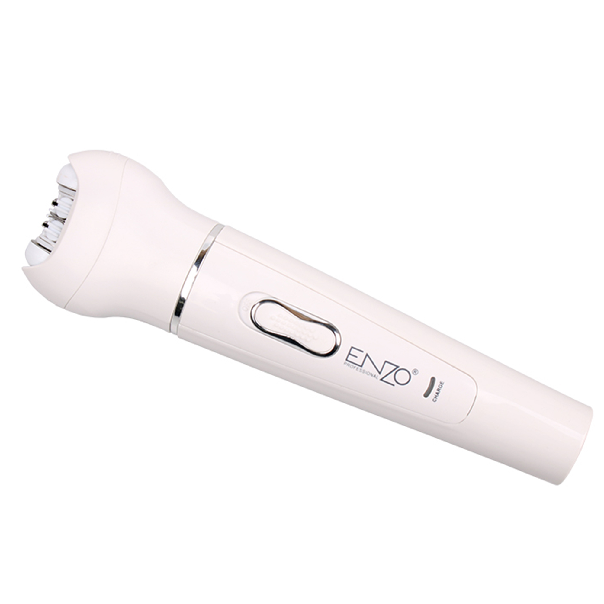 اپیلاتور انزو پروفیشینال مدل EN-0104 محصولی کاملا حرفه ای و ضد آب است که همزمان 5 نیاز مختلف را برآورده می کند. این دستگاه علاوه بر سری اپیلاتور دارای سری ماساژور بدن ، سری برس پاکسازی پوست،سری سنگ پا و سری شیور است. سری اپیلاتور، موچینهایی از جنس استیل ضد زنگ دارد که طراحی ویژه آنها، کمک میکند که همهی موها حتی موهای خوابیده از سطح پوست بلند شده و در دام موچینها بیافتند. سری شیور برای کوتاه کردن موها از ته استفاده میشود. پس از اتمام کار اصلاح میتوان به کمک سری ماساژور چرخشی، روی پوست را ماساژ داده تا ضمن برخورداری از حسی لذتبخش، تفاوت رنگ قسمتهای مختلف پوست نیز برطرف شود.سری سنگ پا شما را از شر پوست های مرده و سفت شده خلاص می کند. از سری فیس براش می توان جهت پاکسازی پوست بهره برد. این اپیلاتور دارای استاندارد مقاومت در برابر آب و رطوبت بوده که باعث می شود بتوان از آن در حمام و زیر دوش استفاده کرد. منبع انرژی اپیلاتور از باتری قابل شارژ لیتیوم یونی آن تأمین میشود که با شارژر ارائه شده به همراه محصول شارژ می شود. از این دستگاه هم با سیم و هم بدون سیم میتوان استفاده کرد.