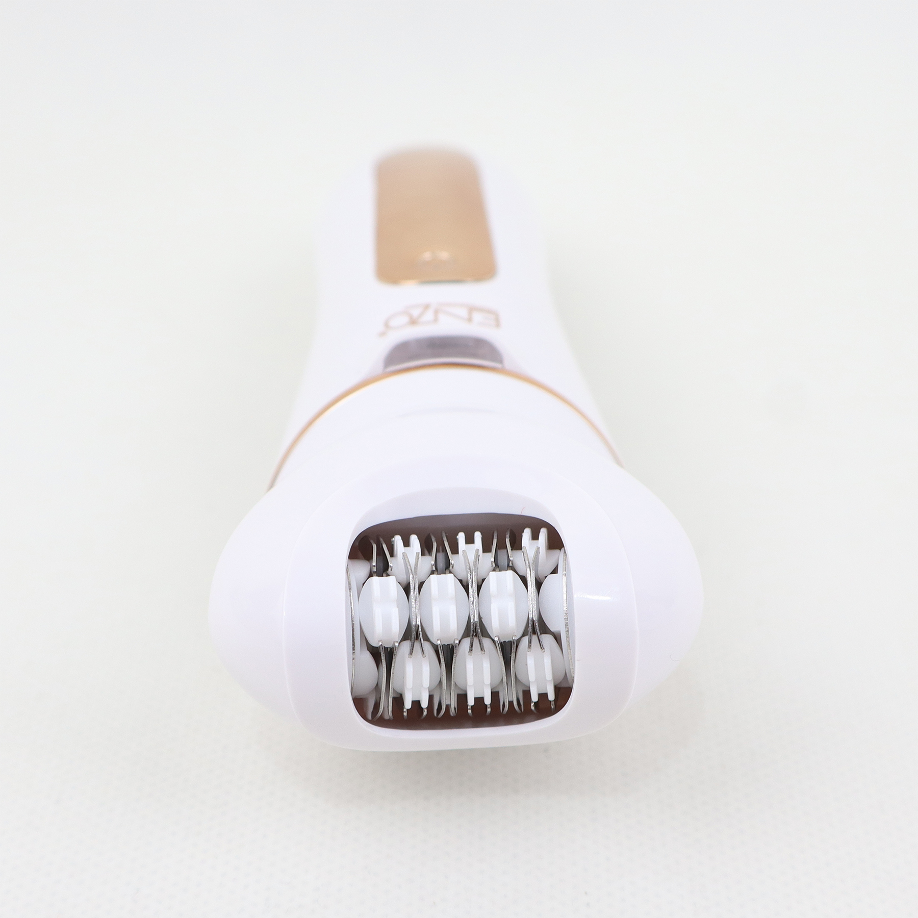اپیلاتور چندکاره ENZO Professional مدل EN-3165 یک موکن شارژی حرفهای برای اصلاح تمیز، لایهبرداری و ماساژ پوست در خانه است؛ موهای بسیار ریز را از ریشه میگیرد تا پوستی یکدست و ابریشمی داشته باشید. سری چرخان با انحنای بدن هماهنگ میشود و به کمک کلاهک ماساژ با لرزش فعال، اپیلاسیون را ملایمتر و مؤثرتر میکند. قابلیت Wet & Dry اجازه میدهد دستگاه را بهصورت بیسیم در حالت خشک یا زیر دوش استفاده کنید و باتری داخلی فقط در حدود ۳ ساعت شارژ شده و تا ۶۰ دقیقه کار مداوم ارائه میدهد. این پک ۶ کاره، همهچیزِ مراقبت از پوست را یکجا فراهم کرده است: برس لایهبردار برای پیشگیری از موی زیرپوستی و شفافتر شدن پوست، سری ماساژ بدن برای بهبود گردش خون و رفع خستگی، کلاه اپیلاتور مخصوص نواحی وسیع بدن و ظریف صورت، سری شیور برای کوتاهکردن سریع یا مرتبسازی خط بیکینی و زیربغل، و کالوسریموور برای نرم کردن پاشنه و نواحی زبر؛ پایه شارژ جمعوجور نیز نگهداری و دسترسی را ساده میکند. طراحی ارگونومیک و بدنه خوشدست استفاده طولانیمدت را راحت کرده و این دستگاه را به انتخابی ایدهآل برای اصلاح پا، دست، زیر بغل، بیکینی و نواحی ظریف صورت بدل میسازد. اگر بهدنبال خرید اپیلاتور زنانه شارژی ضدآب با کارایی کامل و قیمت مقرونبهصرفه هستید، ENZO EN-3165 با عملکرد ۶ در ۱، اصلاحی دقیق، لایهبرداری منظم و مراقبت کامل پوست را در یک دستگاه حرفهای به شما میدهد.