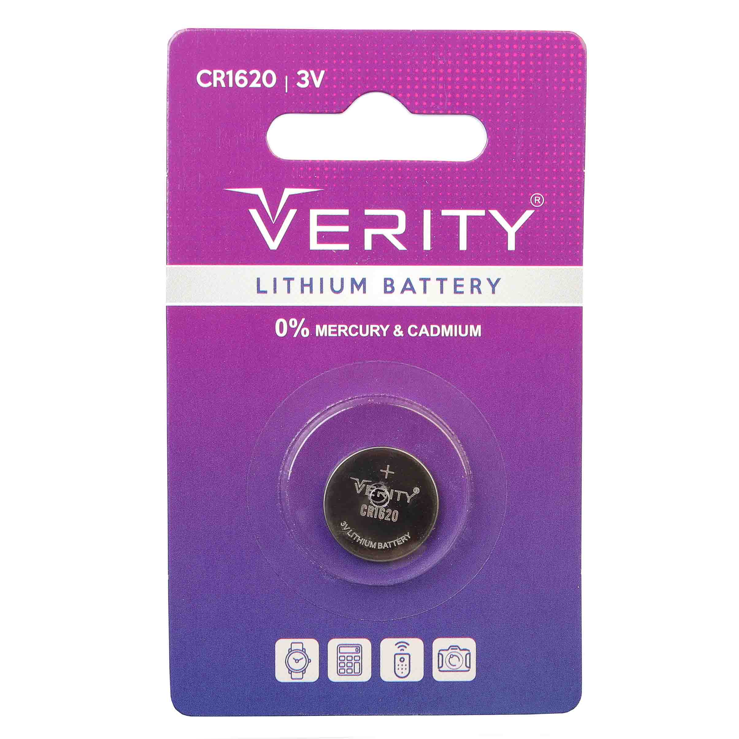باتری CR1620 وریتی دارای قطری به اندازه 16 میلی متر و و ضخامت 2.0 میلی متر میباشد.این باتری دارای تکنولوژی لیتیومی میباشد .