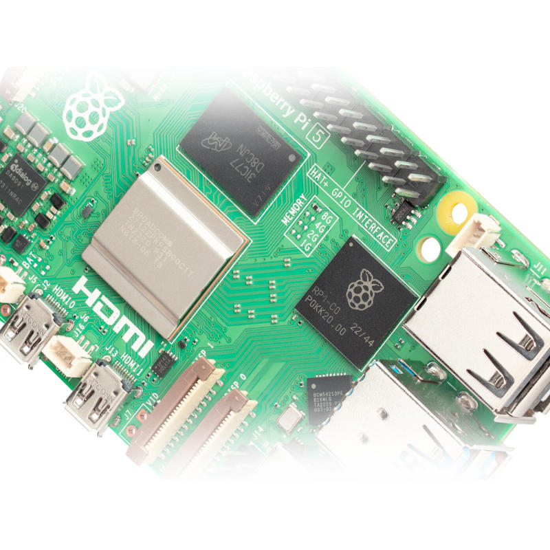 برد رزبری پای 5 دارای تنوع حافظه رم متنوع شامل رم 2، 4، 8 و 16 گیگابایت است که می‌توانید مقاله بررسی میزان رم مورد استفاده در این برد را در بخش وبلاگ ما مطالعه کنید. این مینی کامپیوتر جدید دارای پردازنده چهار هسته‌ای با معماری 64 بیتی بوده و تکنولوژی آن ARM Cortex-A76 است که فرکانس آن 2.4 گیگاهرتر است. این پردازنده پر قدرت دارای حافظه نهان L2 با ظرفیت 512 کیلوبایت و حافظه نهان L3 با ظرفیت 2 مگابایت به صورت مشترک است. قلب تپنده گرافیکی این برد استثنایی پردازنده گرافیکی(مقاله اهمیت GPU در پردازش‎های هوش مصنوعی) قدرتمند Video Core VII می‌باشد که دارای فرکانس کاری 800 مگاهرتز است و از موتورهای گرافیکی OpenGL ES ورژن 3.1 و Vulkan ورژن 1.2 پشتیبانی می‌کند.