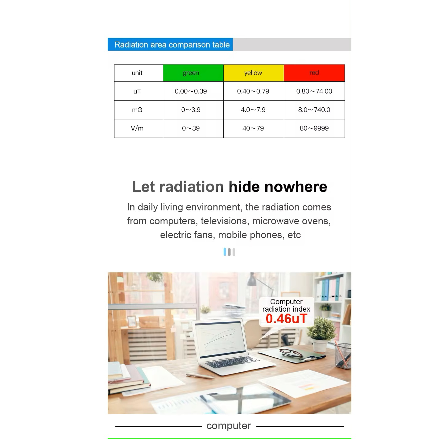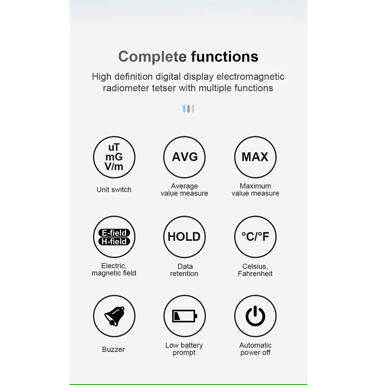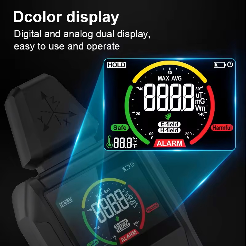 - دامنه اندازهگیریV/m:0~9999/uT:0~74/mG:0~740