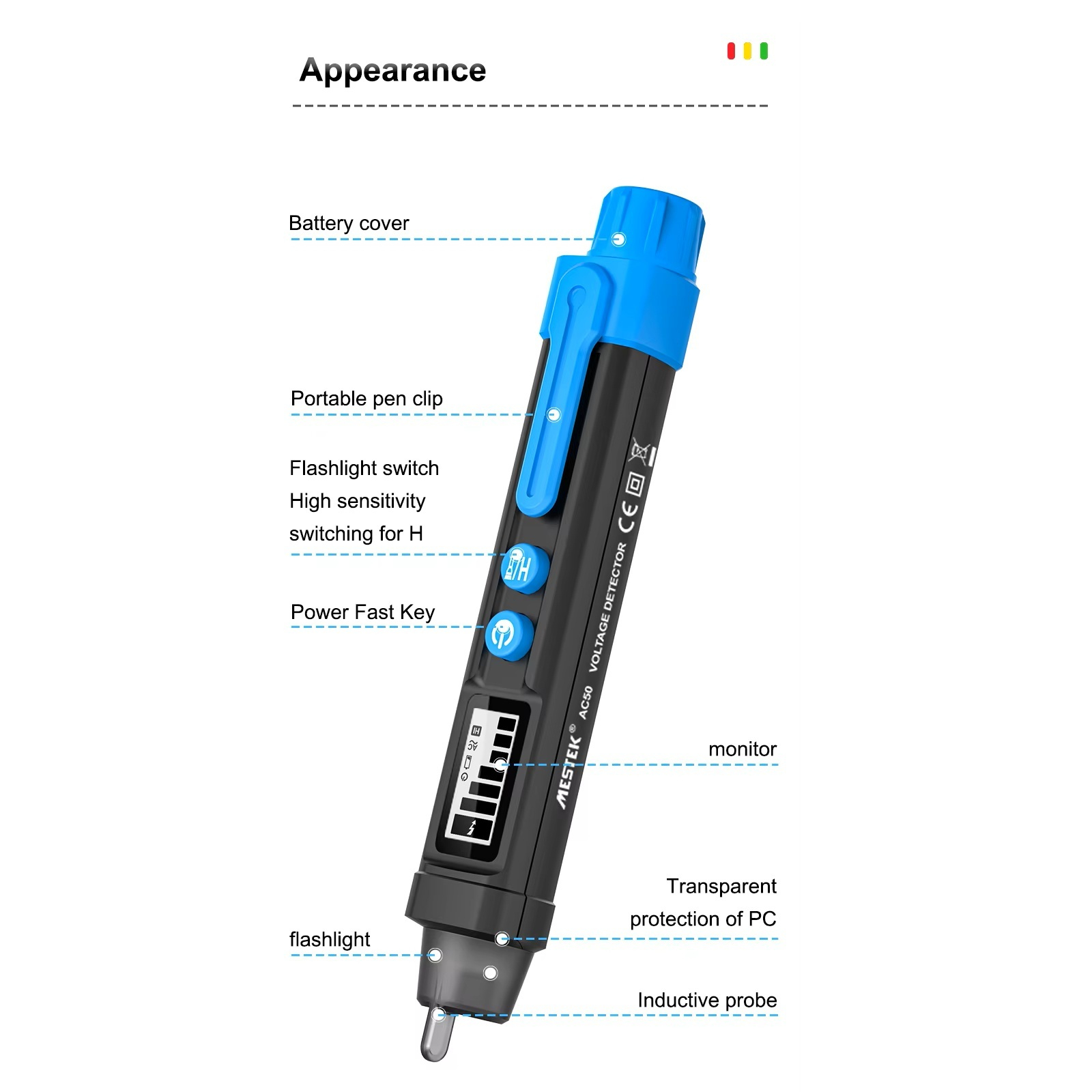 شرکت شنزن مستک تولز یکی برترین تولید کنندگاه ابزار آلات اندازه گیری دقیق با 15 سال سابقه در کشور چین میباشد . محصولات این شرکت شامل محصولات اندازه گیری الکترونیک، صنعت صدا و نور، سنجش حرارت، اپتیک و فاصله سنج های لیزی و هچنین دوربین های تصویری میباشد. تستر ولتاژ مستک مدل AC50, یک تستر غیر تماسی و قلمی شکل است. که می تواند ولتاژ را از 12V تا 1000V ولت و از 48V تا 1000V اندازه گیری کند. این محصول دارای هشدار صوتی و بصری می باشد که توسط نمایشگر دیجیتالی میتوان میزان شدت ولتاژ را تشخیص دهد . همچنین دارای چراغ قوه LED برای استفاده آسان در شب یا در محیط های تاریک می باشد.