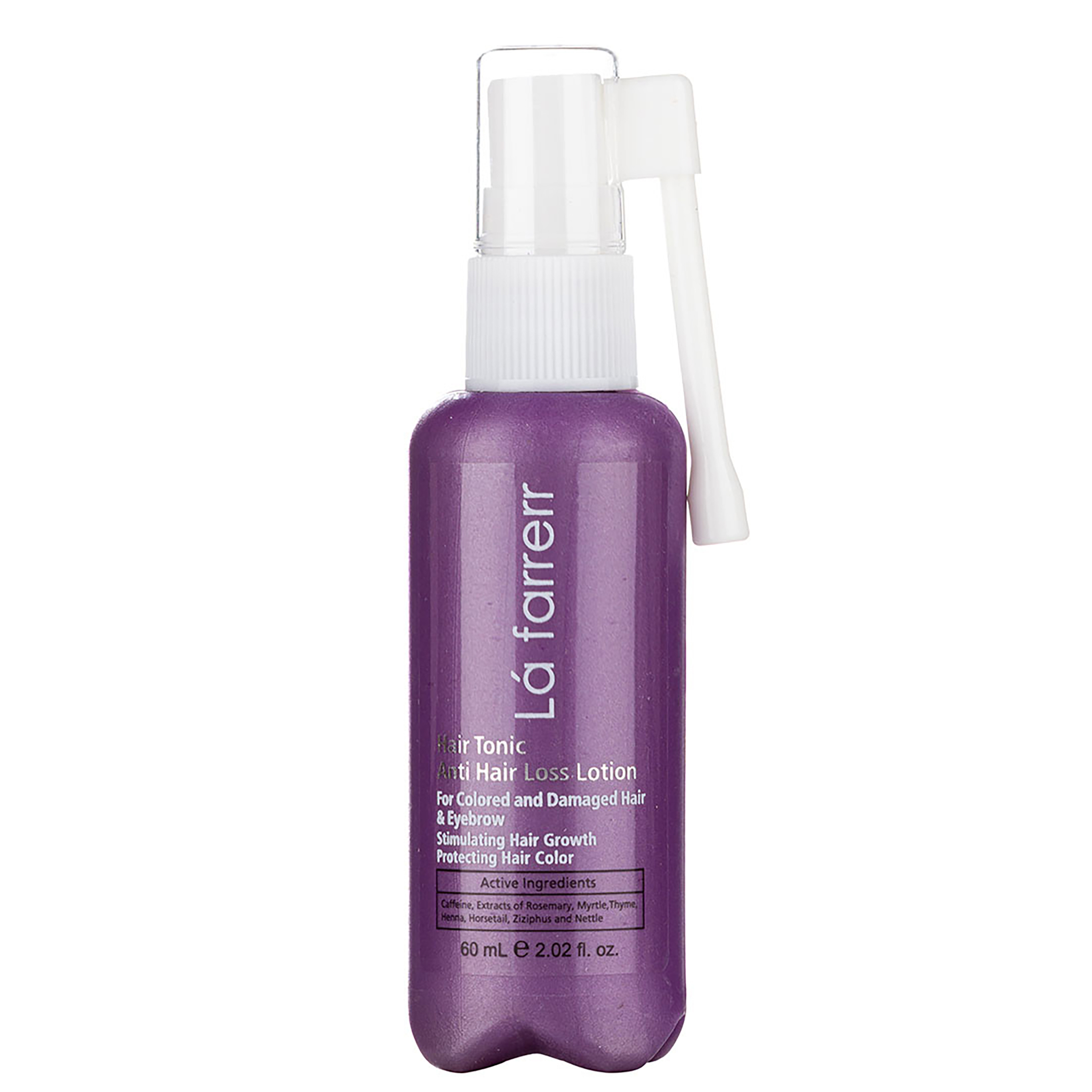 تونیک ضد ریزش مو و ابرو مخصوص موهای رنگ شده و آسیب دیده لافارر حاوی کافئین، عصاره گیاهان رزماری، مورد، دم اسب،آویشن، سدر، حنا و گزنه میباشد که موجب کنترل و مهار عوامل ریزش مو، جلوگیری از تبدیل تستسترون به DHT ، موثر در انواع ریزش مو و کمک به رویش مجدد تارهای مو میگردد.