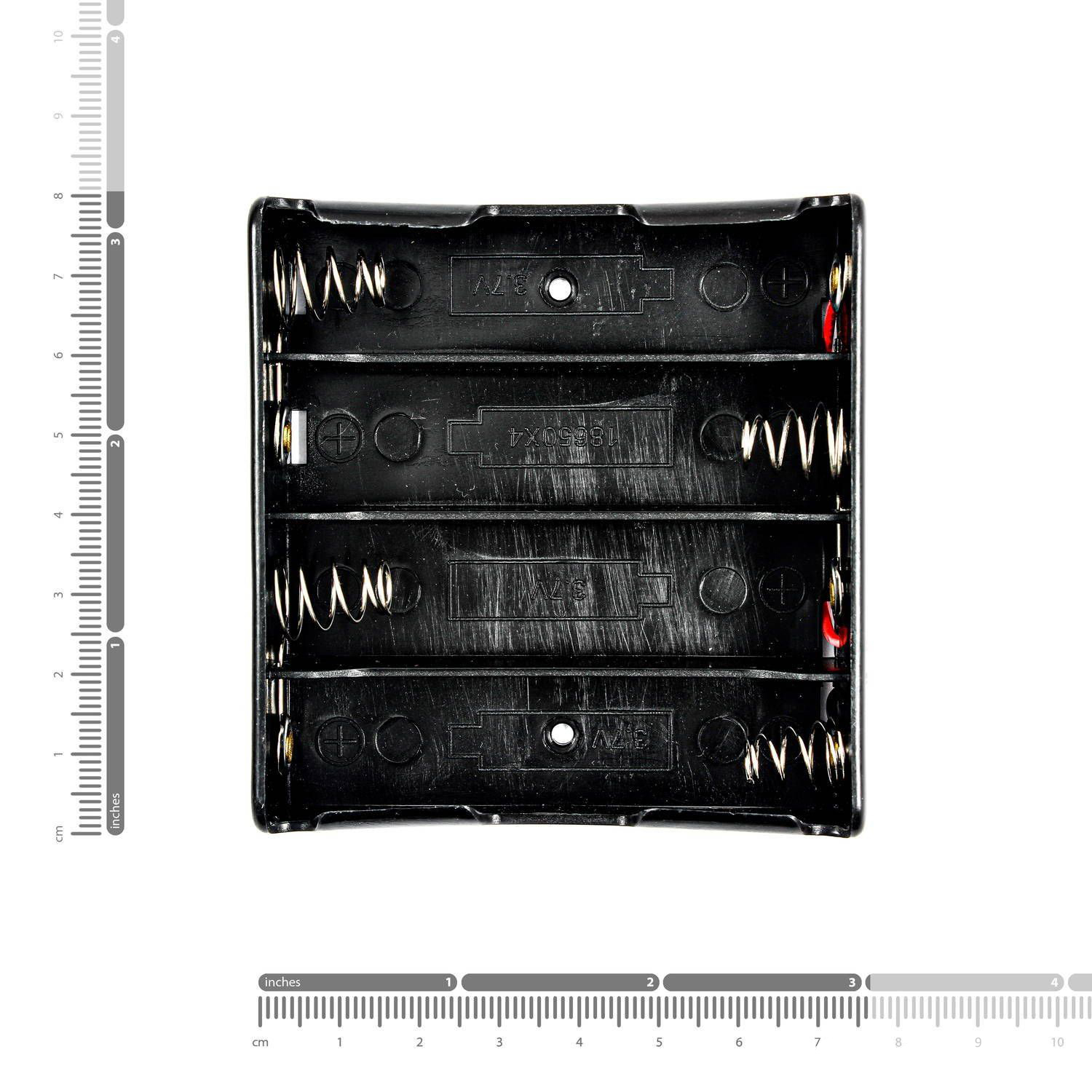 این محصول شامل 1 عدد جا باتری چهارتایی مناسب برای سلول‌های لیتیوم یون از نوع 18650 می‌باشد. هر جا باتری دارای دو سیم مشکل و قرمز به طول 12 سانتی متر می‌باشد. اتصال پیش فرض باتری‌ها به صورت سری است اما با قرار دادن دو باتری به صورت معکوس و لحیم کردن سیم‌های جدید، می‌توانید به صورت موازی هم از آن‌ها استفاده کنید.