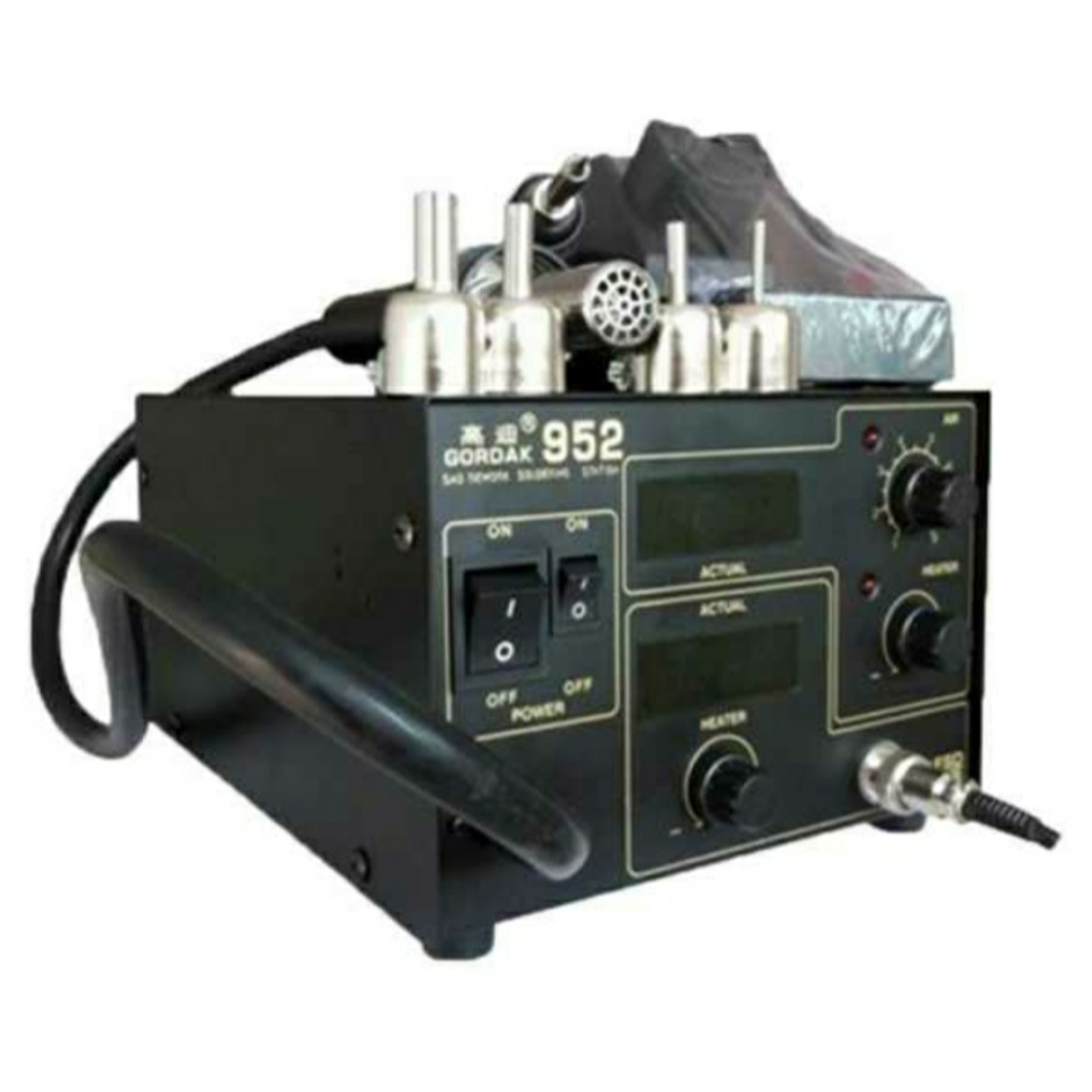 هویه هوای گرم Gordak 952 دیجیتال یکی از پرکاربردترین ابزار و تجهیزات برای تعمیرکاران و طراحان بردهای الکترونیکی به ویژه بردهای دارای قطعات SMD می باشد.دستگاه هیتر و هویه گرداک 952 جهت تعویض آی سی گوشی های موبایل و تعویض قطعات برد های الکترونیکی به کار میرود. هیتر گرداک 952 را میتوان یکی از محبوب ترین و پرفروش ترین هیتر های موجود در بازار به شمار آورد.