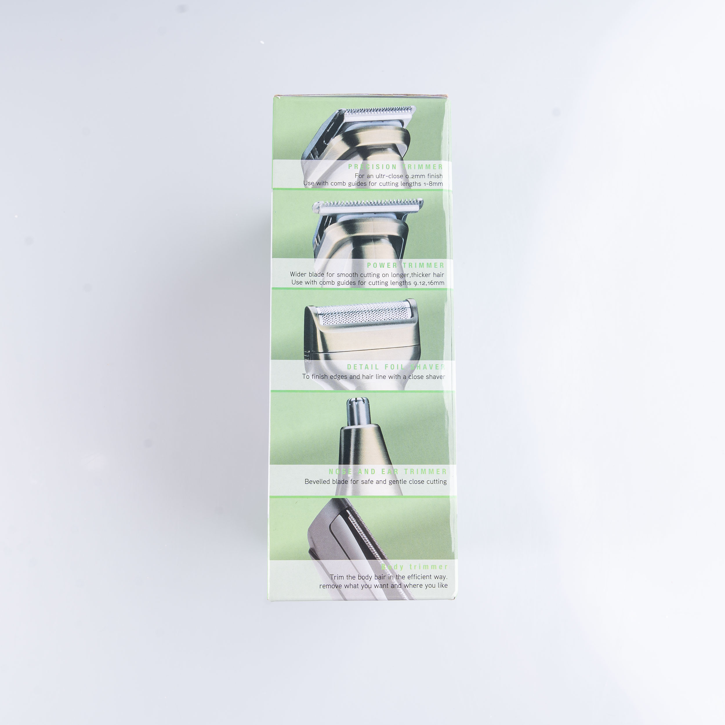 این ست شامل یک ریمر دقیق برای اصلاح نزدیک، یک تریممر قدرتمند با تیغه‌های عریض، و یک شیویر فویلی برای اتمام کارها و حالت‌دهی به خط موها است. همچنین، تریممر بینی و گوش با تیغه‌های منحنی ایمنی، و تریممر بدن برای اصلاح بهینه موهای بدن، همه در یک مجموعه 5 در 1 قرار دارند.