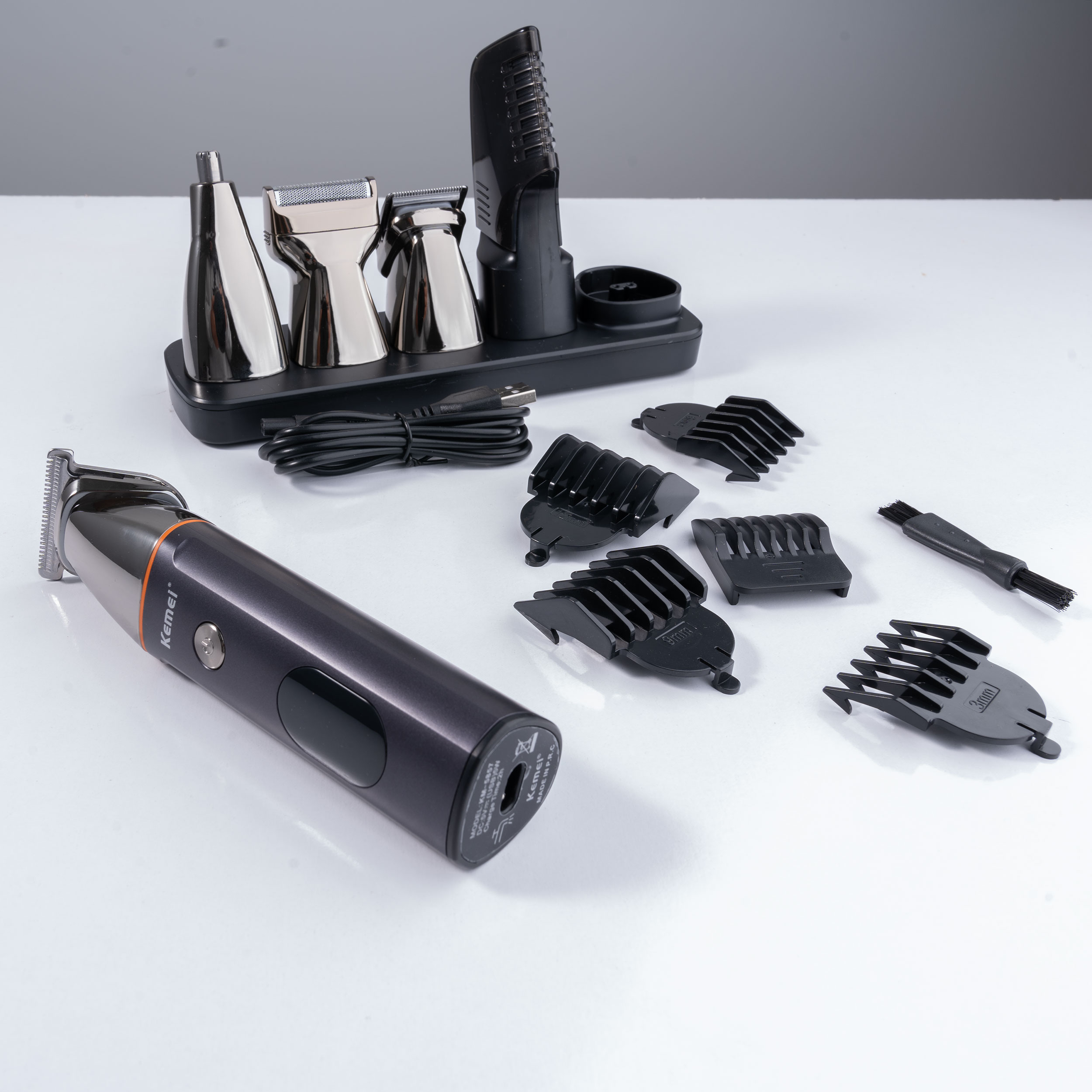 ست ماشین اصلاح موی صورت کیمی مدل KM-5857، یک ابزار قدرتمند و چند منظوره است که با توجه به نیازهای شما طراحی شده است. این محصول با توان مصرفی 5 وات، انرژی کمی مصرف می کند و در عین حال کارایی بالایی دارد. این ماشین اصلاح ضد آب است و دارای گواهی IPX6 است که نشان دهنده مقاومت بالای آن در برابر آب است. بنابراین، شما می توانید با خیال راحت از آن در حمام و مکان های مرطوب استفاده کنید. باتری قدرتمند 600 میلی آمپر ساعتی، این ماشین اصلاح را تا 90 دقیقه پشتیبانی می کند، در حالی که برای شارژ کامل آن فقط 120 دقیقه زمان لازم است. این محصول با 5 عدد شانه با سایز های 3 تا 12 میلیمتر، برس تمیزکننده و کابل شارژر عرضه می شود. همچنین، یک استند قرارگیری نیز برای راحتی شما در نگهداری و استفاده از ماشین اصلاح در نظر گرفته شده است. ماشین اصلاح موی کیمی مدل KM-5859 با 4 سری مختلف عرضه می شود که شامل سری تریمر برای خط زنی، سری فویلی برای اصلاح ریش، سری مناسب برای اصلاح موی بینی و سری مناسب برای مرتب کردن ابرو می باشد. این مجموعه کامل از سری ها به شما امکان می دهد تا با یک دستگاه واحد، به تمام نیازهای اصلاح موی خود بپردازید. با ماشین اصلاح موی صورت کیمی مدل KM-5857، تجربه اصلاح موی خود را به یک سطح جدید ببرید.