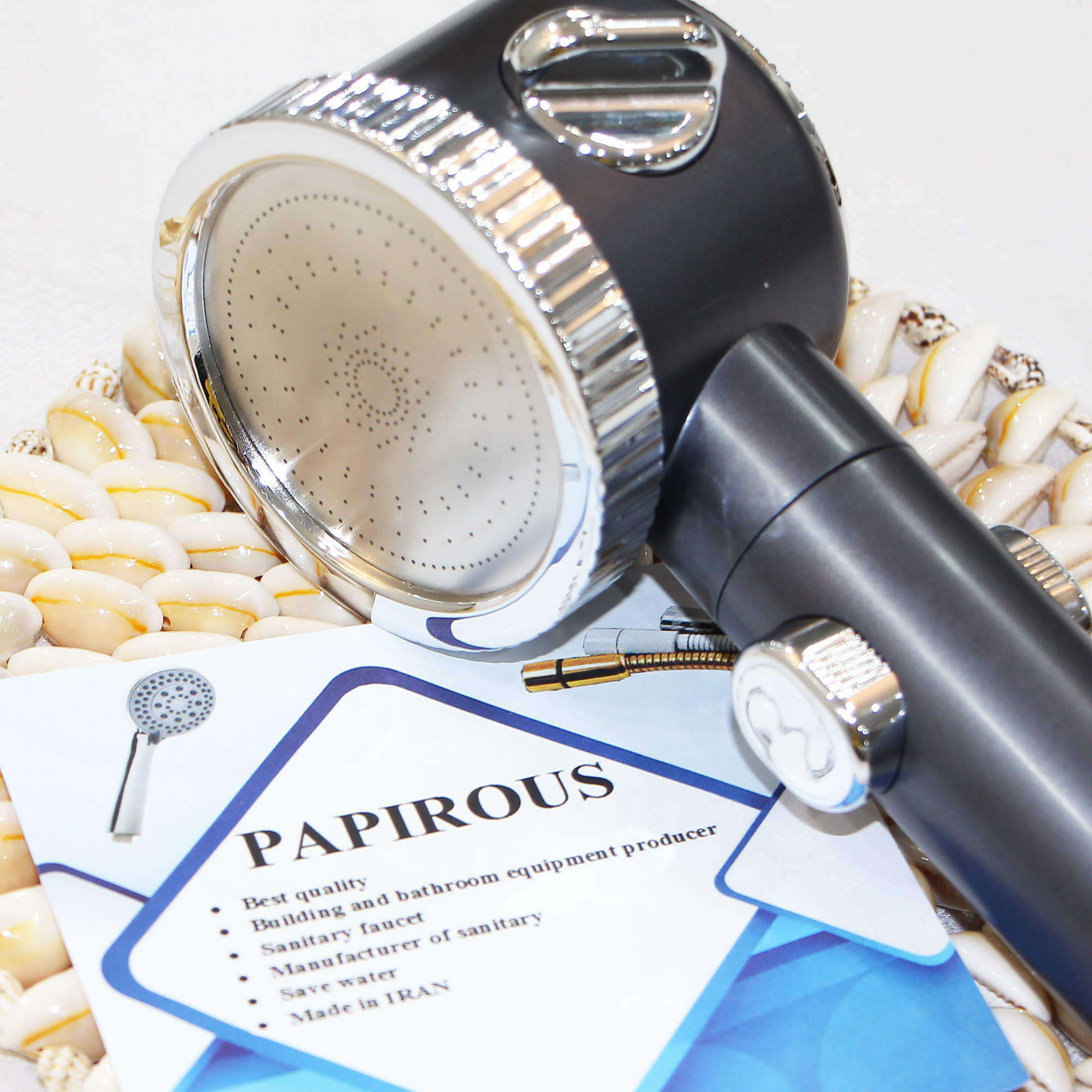 سر دوش حمام پاپیروس مدل چند حالته Argon یک محصول با کیفیت است که مجهز به دکمه قطع و وصل جریان آب است. همچنین دارای فیلتر الیافی جهت تصفیه آب می باشد و دارای یک ردیف برس سیلیکونی جهت ماساژ پوست بدن و سر می باشد تا تجربه ای لذت بخش از دوش داشته باشید. جهت شست شوی حمام میتوانید سری را مطابق عکس جدا کرده و از دسته به عنوان سری پرفشار شلنگ جهت شست شوی سطوح حمام استفاده نمایید. در ضمن تعداد زیاد نازل آب سبب پخش مناسب آب و همچنین کاهش مصرف آب می شود. این سردوش مجهز به چند حالت پاشش آب می باشد. استفاده از مواد پلیمری مرغوب در ساخت این محصول موجب محافظت و زیبایی دو چندان آن می شود. استفاده از این سردوش میتواند لذت داشتن یک استحمام مناسب را فراهم کند.