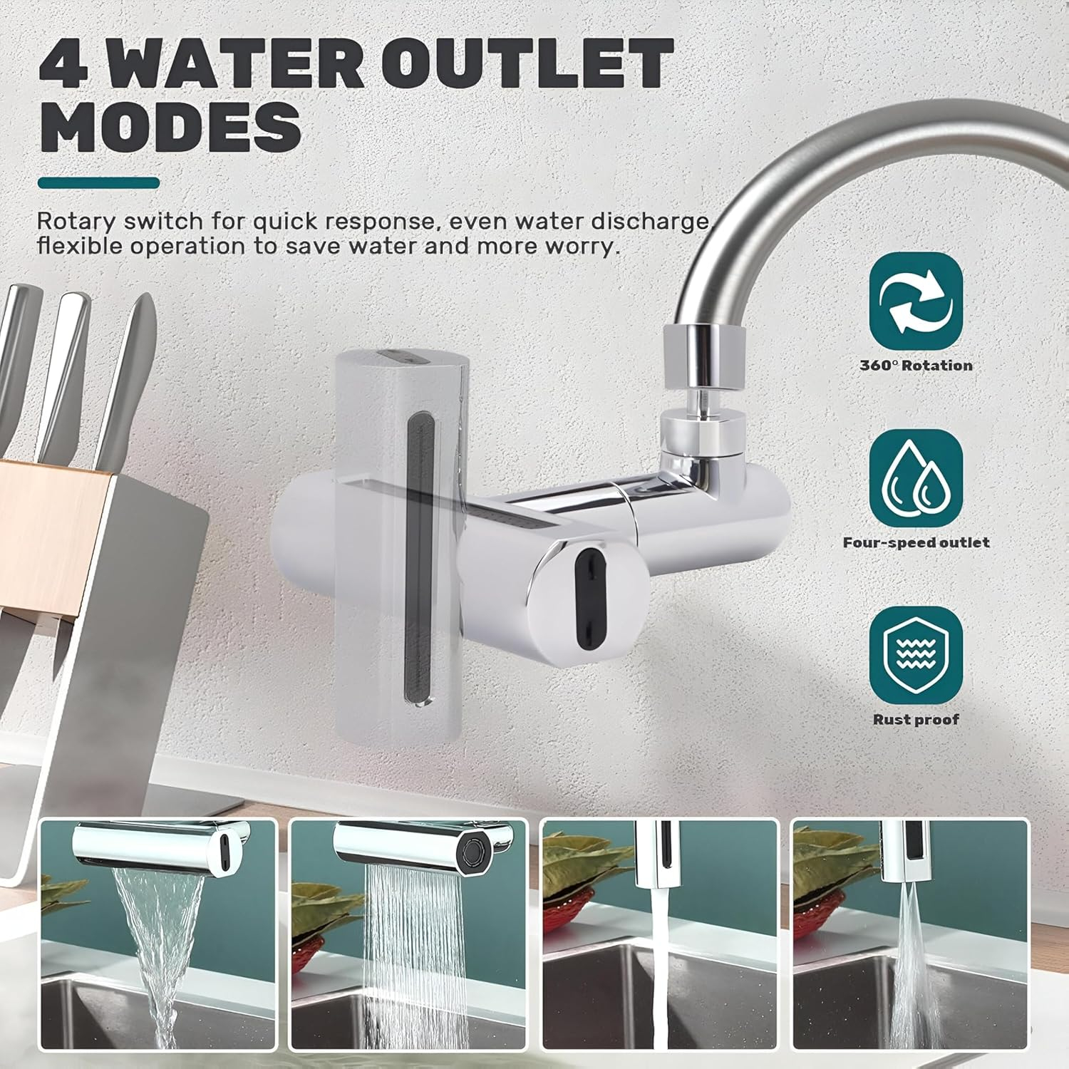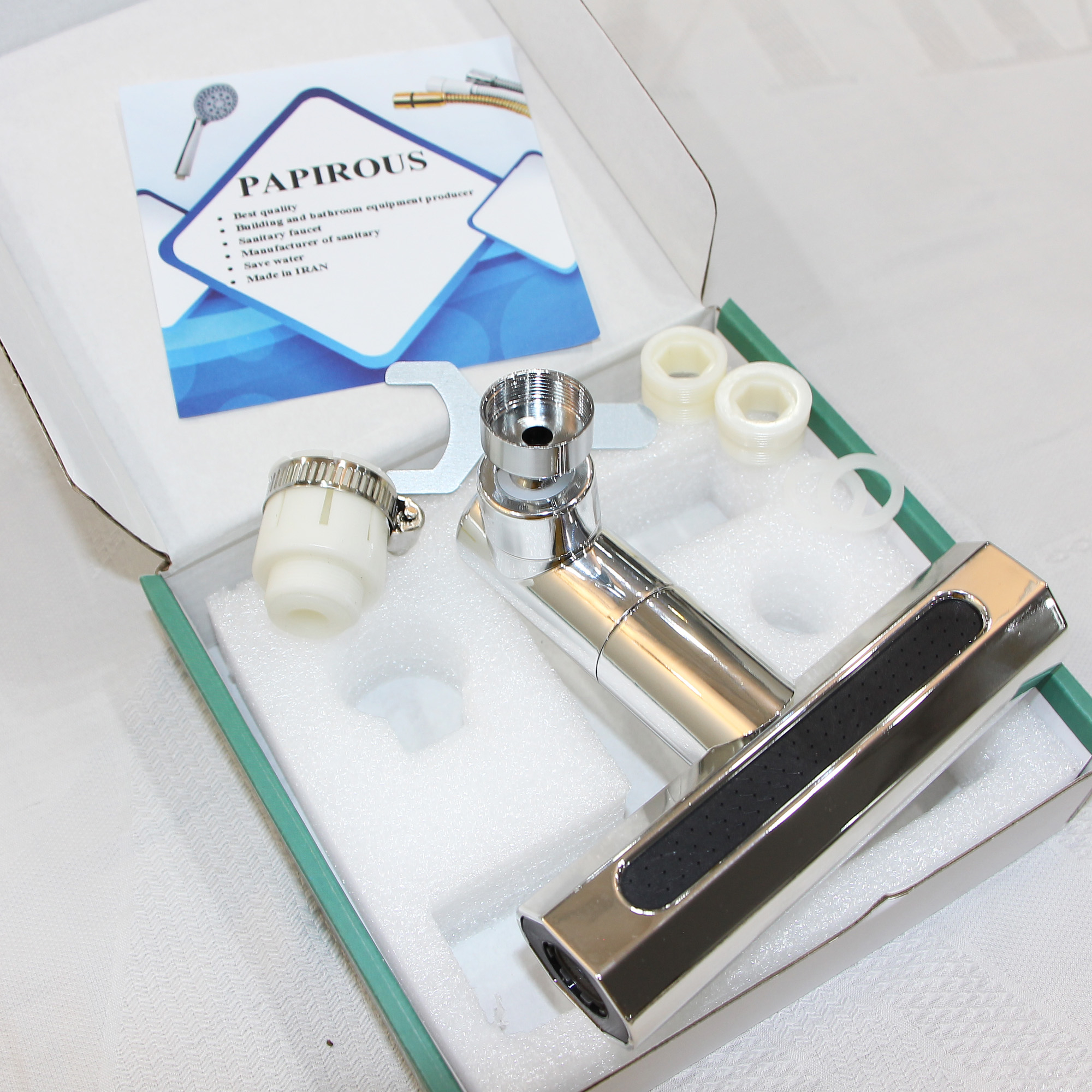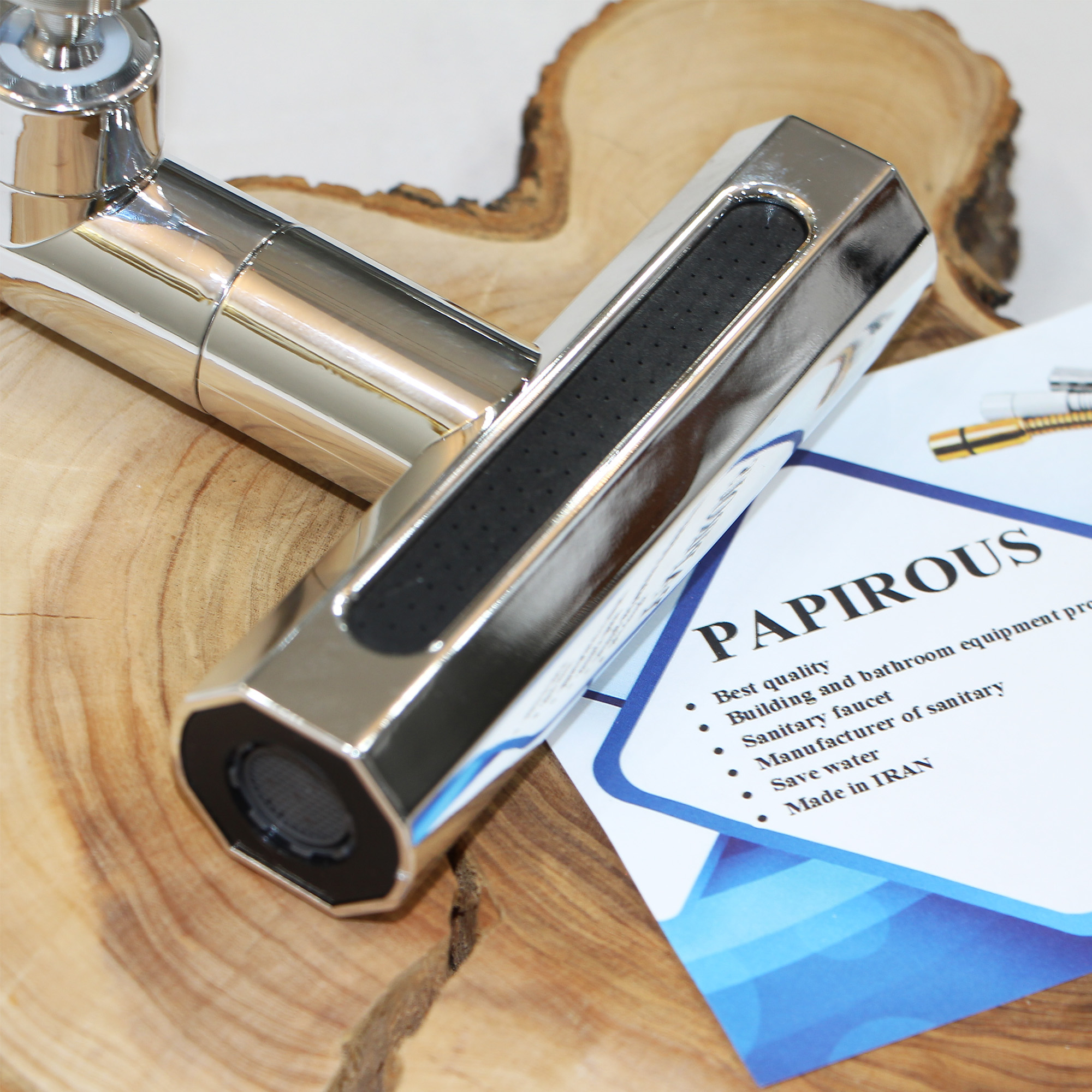 سری شیر آب پاپیروس مدل چندحالته آبشاری LUX با قابلیت چرخش 360 درجه و مجهز به 4 حالت پخش آب، امکان شستشوی راحت را می دهد. در چهار طرف خود ، چهار خروجی آب با پاشش های متفاوت از یکدیگر دارد. پاشش در قسمت های پهن تر شامل حالت بارانی و آبشاری می باشد که می تواند در شست و شو و آبکشی بسیار کارآمد باشد ، اما دو قسمت کوچک کناری سر شیر چند منظوره ، دارای دو حالت پاشش روان و دو تیغه است که فشار بیشتر پاشش را به همراه دارند و بسته به نیاز قادر خواهید بود یکی از حالت ها را انتخاب کنید ، کافی است سری محصول که امکان چرخش 360 درجه را دارد به صورت دوار بچرخانید . این سر شیر آب، با استفاده از ترکیبی از مواد باکیفیت و پلاستیک ABS، عمر طولانی و دوام بی‌نظیری دارد. نکته: سایز قطر این سری شیر آب برای تمامی شیرهای روشویی و آشپزخانه رایج بازار ایران مناسب می‌باشد.