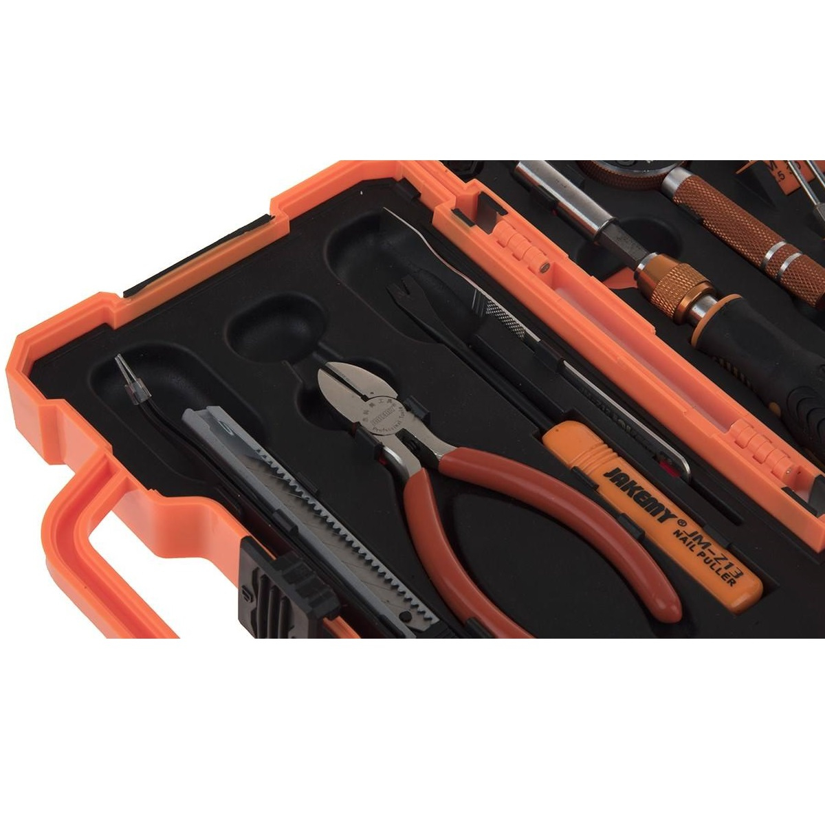 مجموعه‌ی فوق دارای 47 ابزار کاربردی است که برای انجام تعمیرات موبایل، تبلت، کامپیوتر و … مورد استفاده قرار می‌گیرد. در این مجموعه سایزهای مختلفی از پیچ‌گوشتی و بکس قرار دارند که بسیار پراستفاده هستند. تمامی ابزارها درون یک کیف پلاستیکی قرار دارند که این موضوع حملشان را آسان‌تر کرده است.