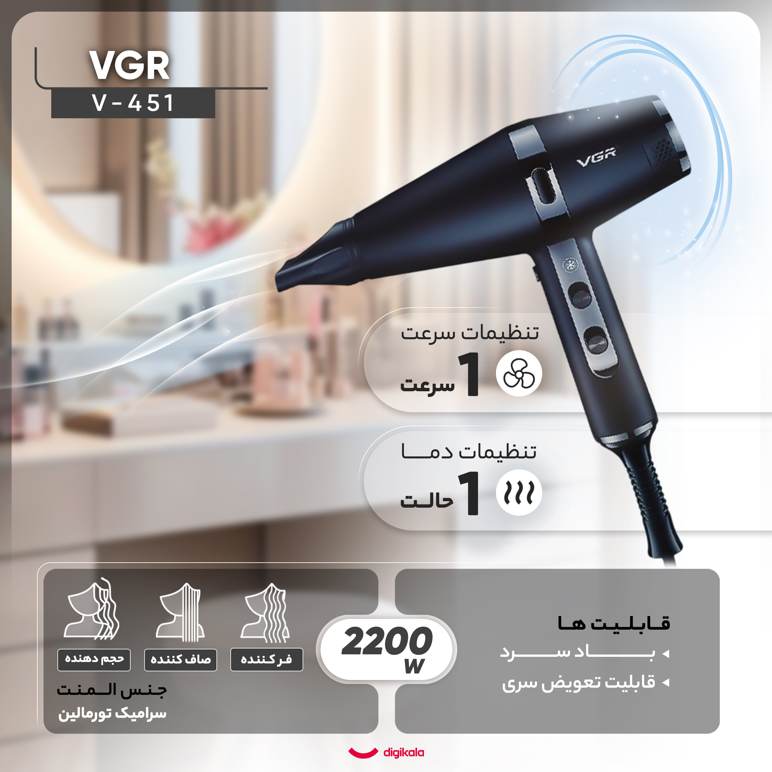 ویژگیهای کلیدی سشوار وی جی ار مدل V-451