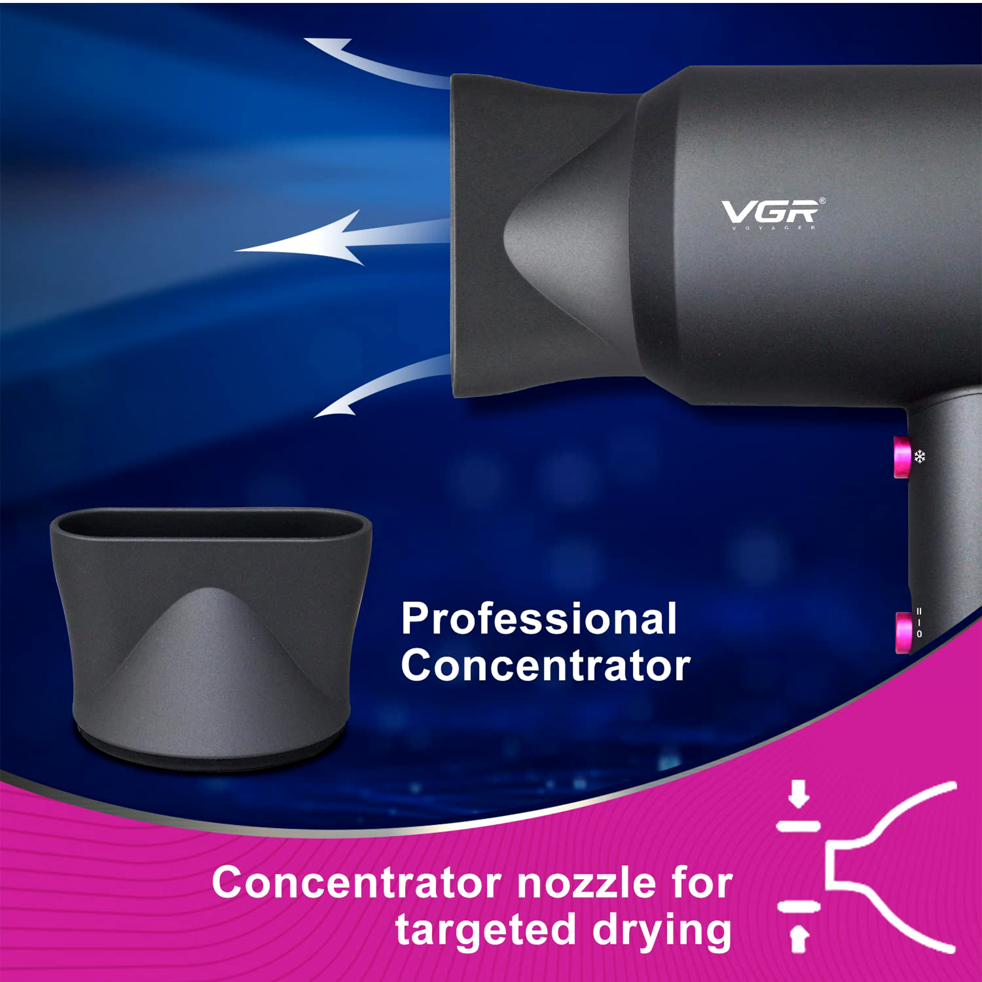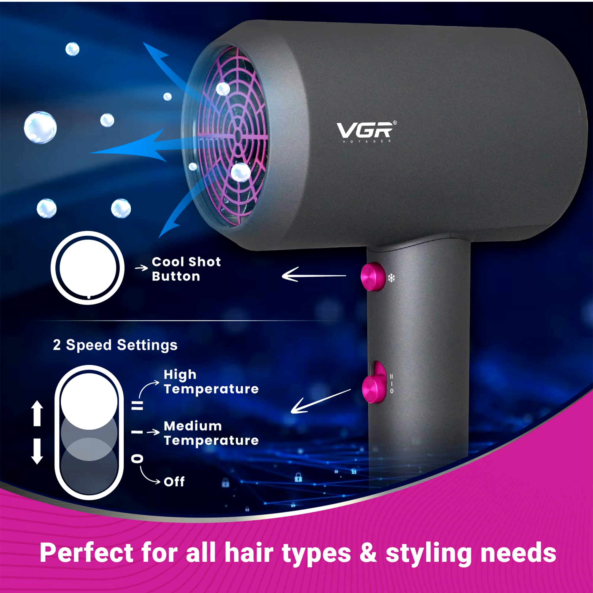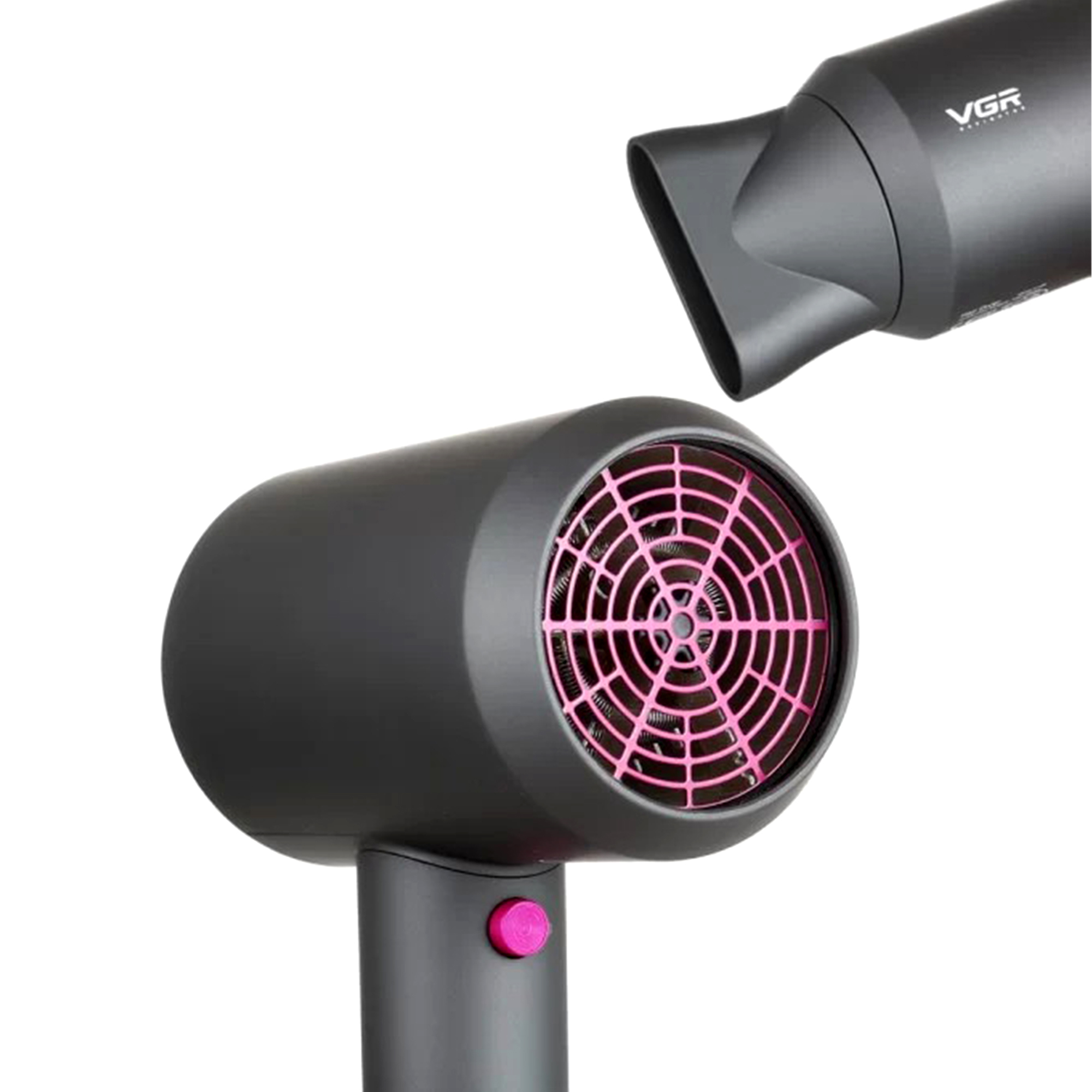 سشوار وی جی آر مدلv-400 محصولی کاملاً حرفه‌ای بوده که مناسب برایاستفاده خانگی و سالنهای آرایشگری میباشد. این سشوار دارای بدنه پلاستیکی مات است که علاوه بر زیبایی، باعث استحکام بالای آن و همچنین دوام دستگاه می‌شود و با استفاده از موتور AC که برای آن تعبیه شده موهای شما را در سریعترین زمان ممکن خشک کرده و یا اگر بخواهید به مو حالت بدهید بهترین نتیجه را برای شما به ارمغان می آورد و از هرگونه وزی برای موهای تان جلوگیری خواهد کرد. طراحی دستگاه به گونه ای است که سشوار دارای دکمه خنک کننده و باد سرد نیز است. به همراه این سشوار فوق العاده یک عدد سری مخصوص نیز ارائه شده است.