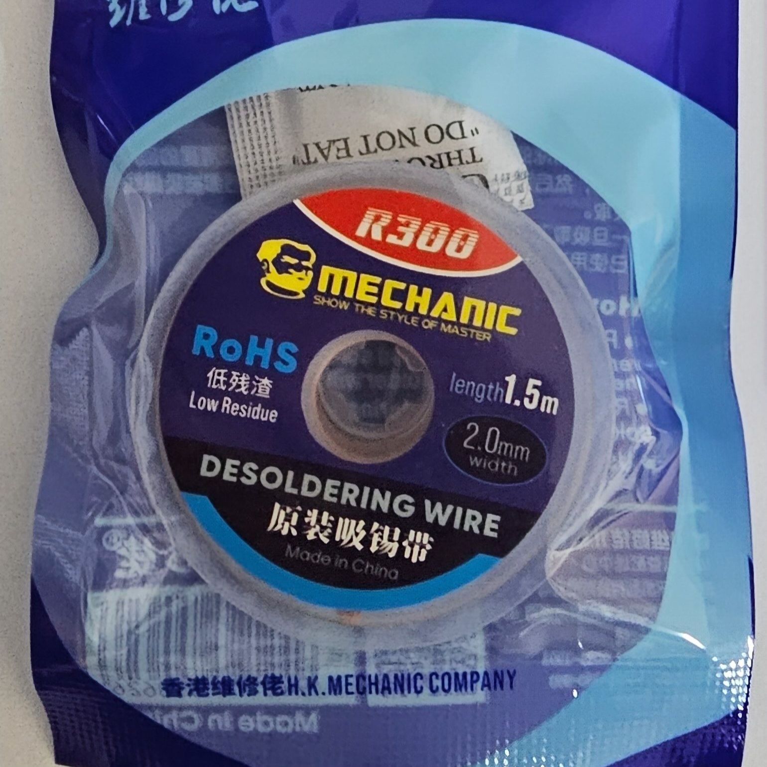 نوع قلع کش : قلع کش سیمی (Desoldering Wire) پهنای سیم قلع کش : 2.0 میلی متر طول قلع کش : 1.5 متر تولید شرکت مکانیک