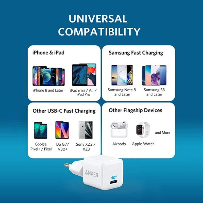 آداپتور 20 وات نانو انکر با ابعاد 28x28x30 میلیمتر و وزن 32 گرم این امکان را برای شما فراهم می کند تا به راحتی این آداپتور شارژ را حمل کنید و در خانه، دفتر و یا در مسافرت به استفاده از آن بپردازید. این آداپتور 20 وات با تمام دستگاه های دارای پورت USB-C سازگار می باشد و شما می توانید با قرار دادن این محصول درون برق و وصل کردن کابل یک سر تایپ سی (سر دیگر کابل تفاوتی ندارد که لایتنینگ باشد یا Type-c) به شارژ کردن دستگاه های خود بپردازید. اما نکته ای که در باره این محصول می ماند آن است که Powerport III توانایی ارائه توان 20 واتی را داراست و این بدان معناست که می تواند گوشی هایی را که از قابلیت شارژ سریع پشتیبانی می کنند در سریع ترین زمان ممکن شارژ کند،.