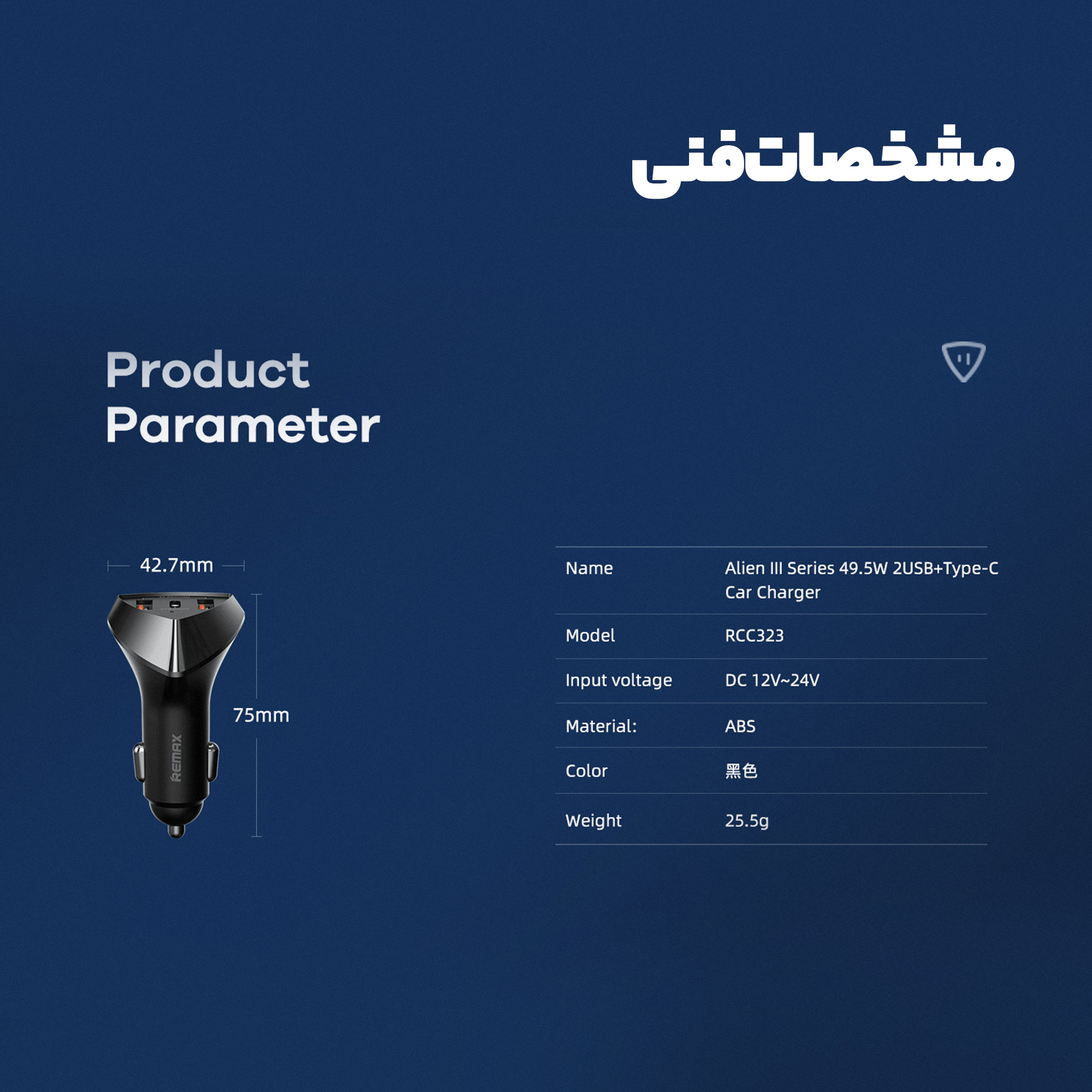 شارژرهای فندکی خودرو به یکی از الزامات داخل خودرو تبدیل شده اند و شرکتهای تولید کننده محصولات جانبی دیجیتال با توجه به اهمیت این مورد تنوع کالایی زیادی رو ایجاد کرده اند! ریمکس یکی از بزرگترین تولیدکنندگان جانبی دیجیتال هم شارژر فندکی های با کیفیت ساخت بالا و ویژگی های خاص تولید میکند . شارژر فندکی ریمکس مدل RCC323 یک شارژر با طراحی خاص و امکانات ویژه است. این شارژر تنها 25.5 گرم وزن دارد و از پلاستیک ABS ساخته شده است کاملا ضد حریق می باشد. در قسمت بالای آن دو پورت USB A و یک پورت USB Type C در وسط دو پورت دیگر قرار دارد. دو پورت USB A این دستگاه تا 22.5 وات میتوانند شارژدهی داشته باشند و از فست شارژ پشتیبانی میکنند. پورت Type C دستگاه هم تا 27 وات شارژدهی فست دارد. شارژر فندکی ریمکس مدل RCC323 از ولتاژ 12-24 پشتیبانی میکند و این امکان فراهم است تا ازین شارژر در انواع اتومبیها از کامیون و ماشینهای سواری براحتی و با ایمنی بالا استفاده کرد. همچنین با توجه به چیپ هوشمند بکار گرفته شده در دستگاه ، در صورت ولتاژ پایین شارژر بلافاصله جریان را قطع میکند تا آسیبی به دستگاه های متصل وارد نشده و از طرفی دیگر با توجه به همین چیپ هوشمند شارژر متناسب با گوشی و یا تبلت شما ارائه میدهد تا نگرانی بابت نوع شارژ و آسیب به باتری گوشی خود نداشته باشید. همچنین شما می توانید دو دستگاه رو همزمان به هر کدام از پورتها به صورت دلخواه وصل کرده و شارژ کنید. RCC323 تا 49.5 وات توانایی پشتیبانی و شارژ دارد و این دستگاه را به یکی از پر سرعت ترین شارژرهای فندکی اتومبیل تبدیل کرده است همچنین این شارژر فندکی دارای تاییدیه و استانداردهای FCC / CE / ROHS می باشد که نشان از کیفیت ساخت آن است که توانایی فروش در تمام دنیا را دارد.