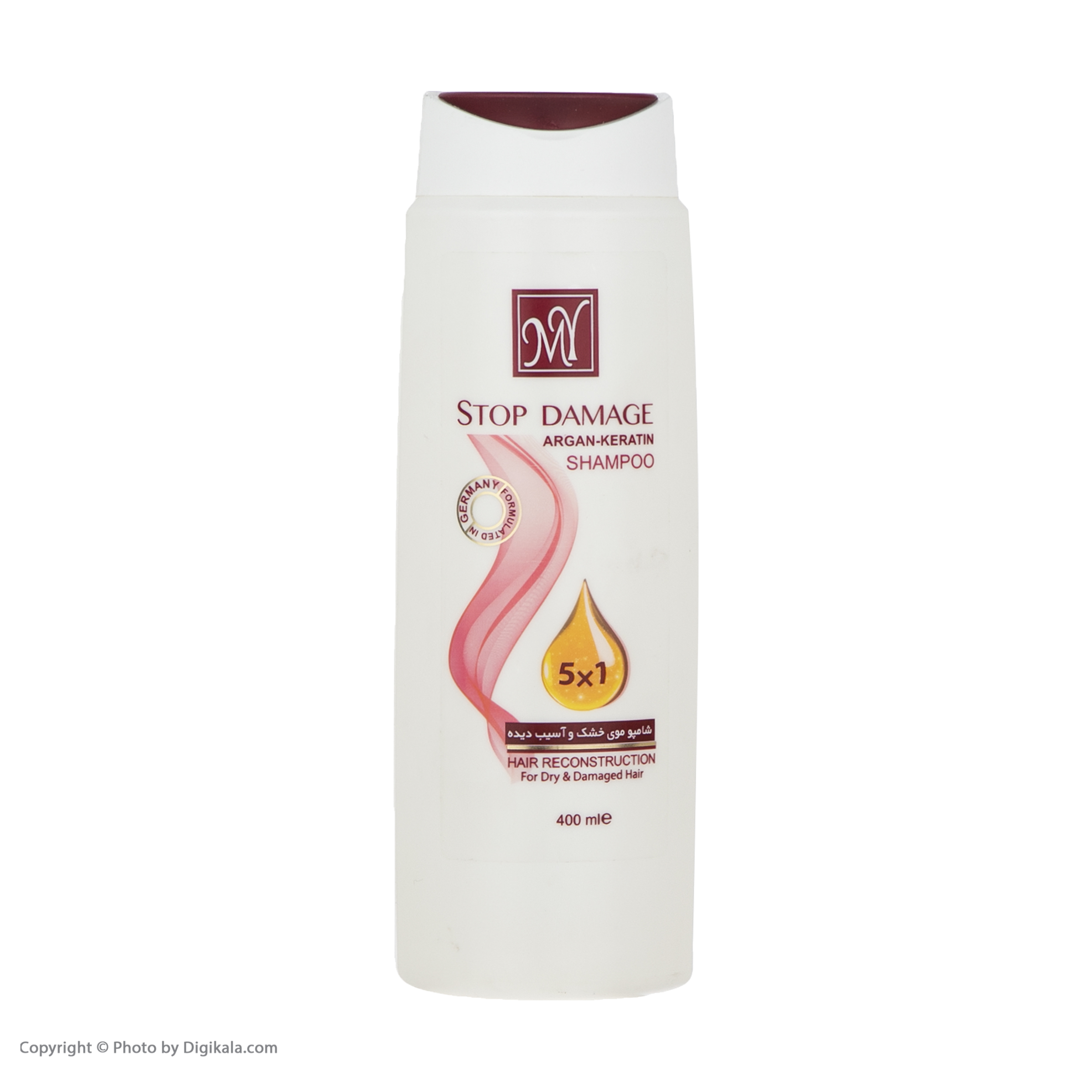 شامپو مخصوص موهای رنگ شده مای مدل Stop Damage مناسب برای موهای رنگ شده و آسیب دیده حجم 400 میلی لیتر