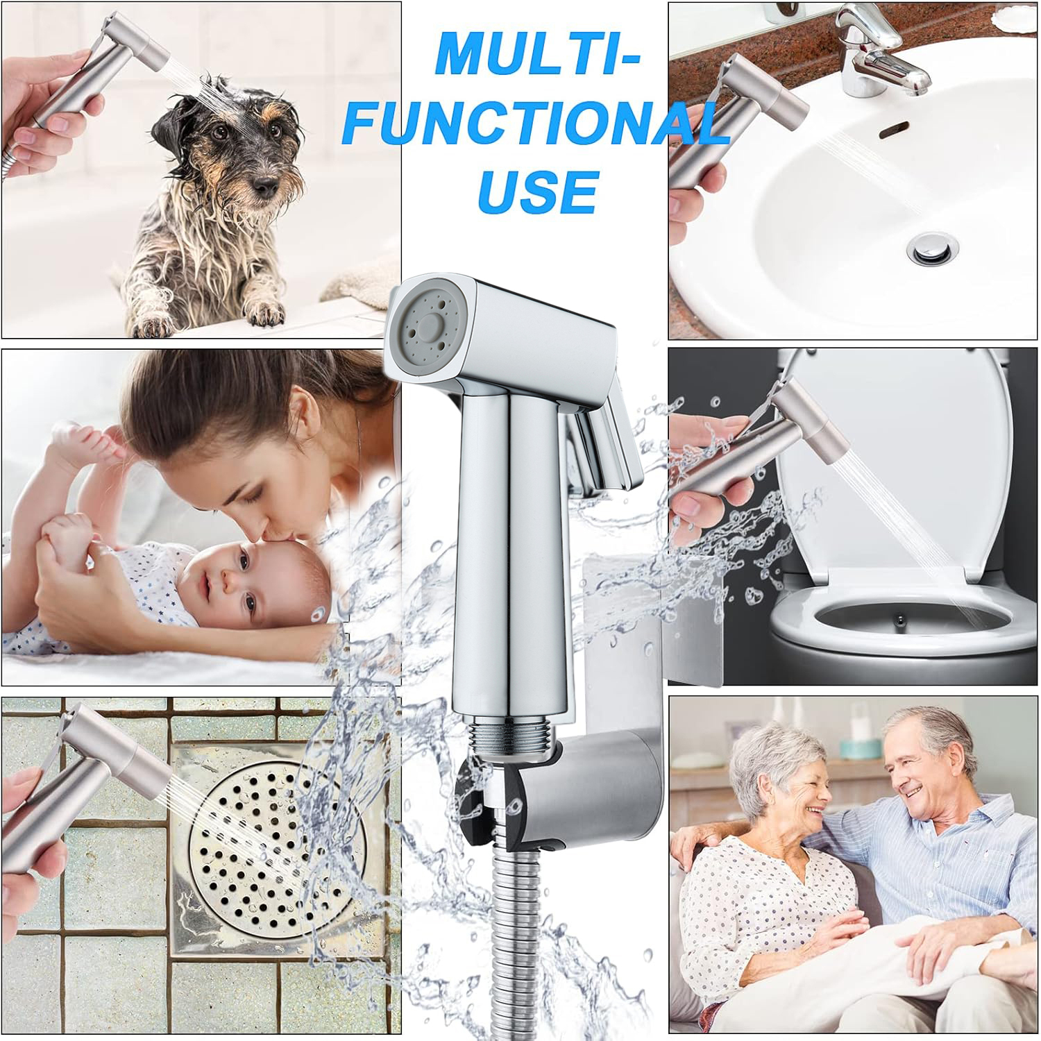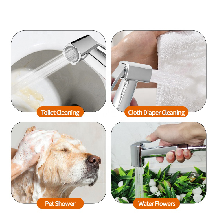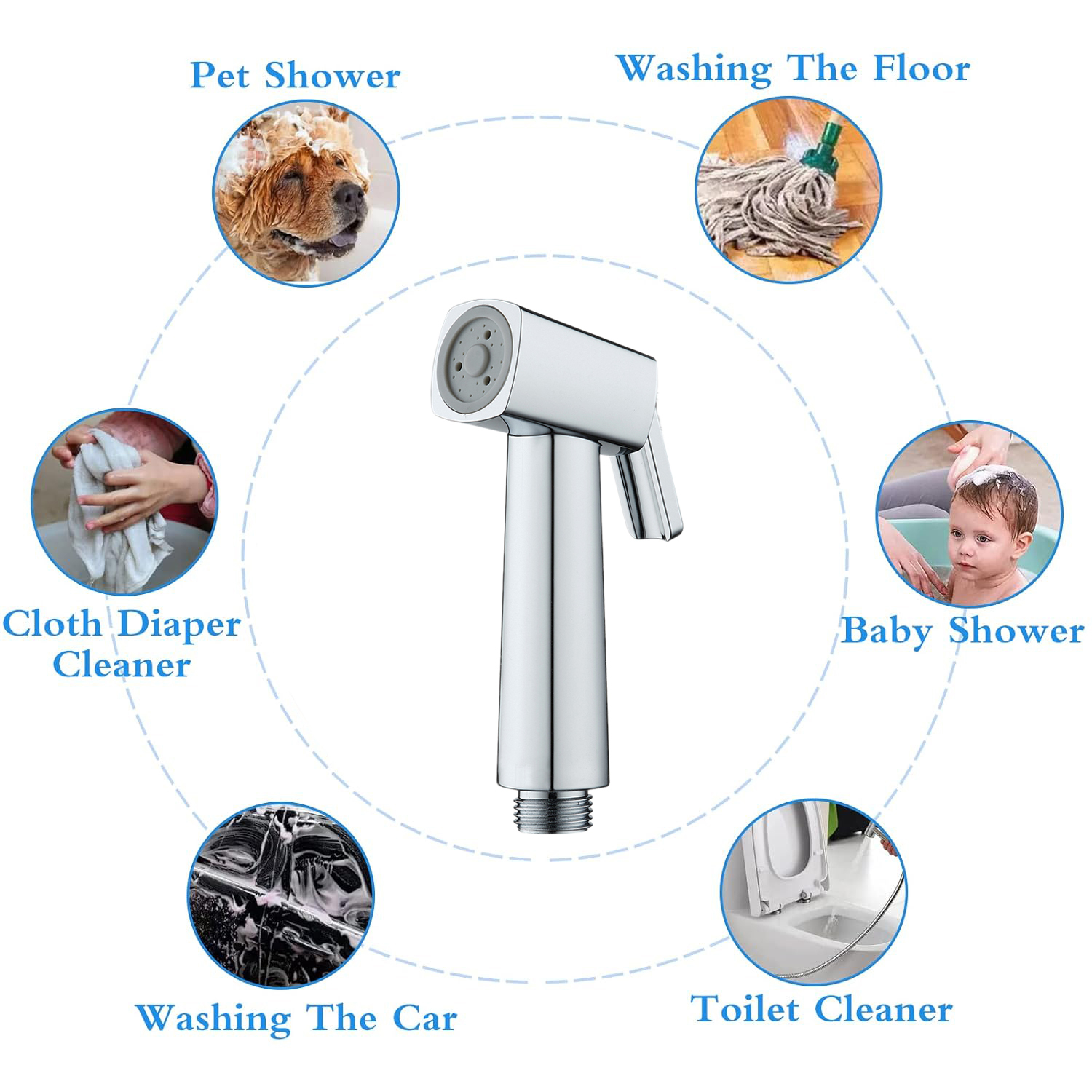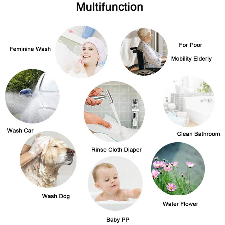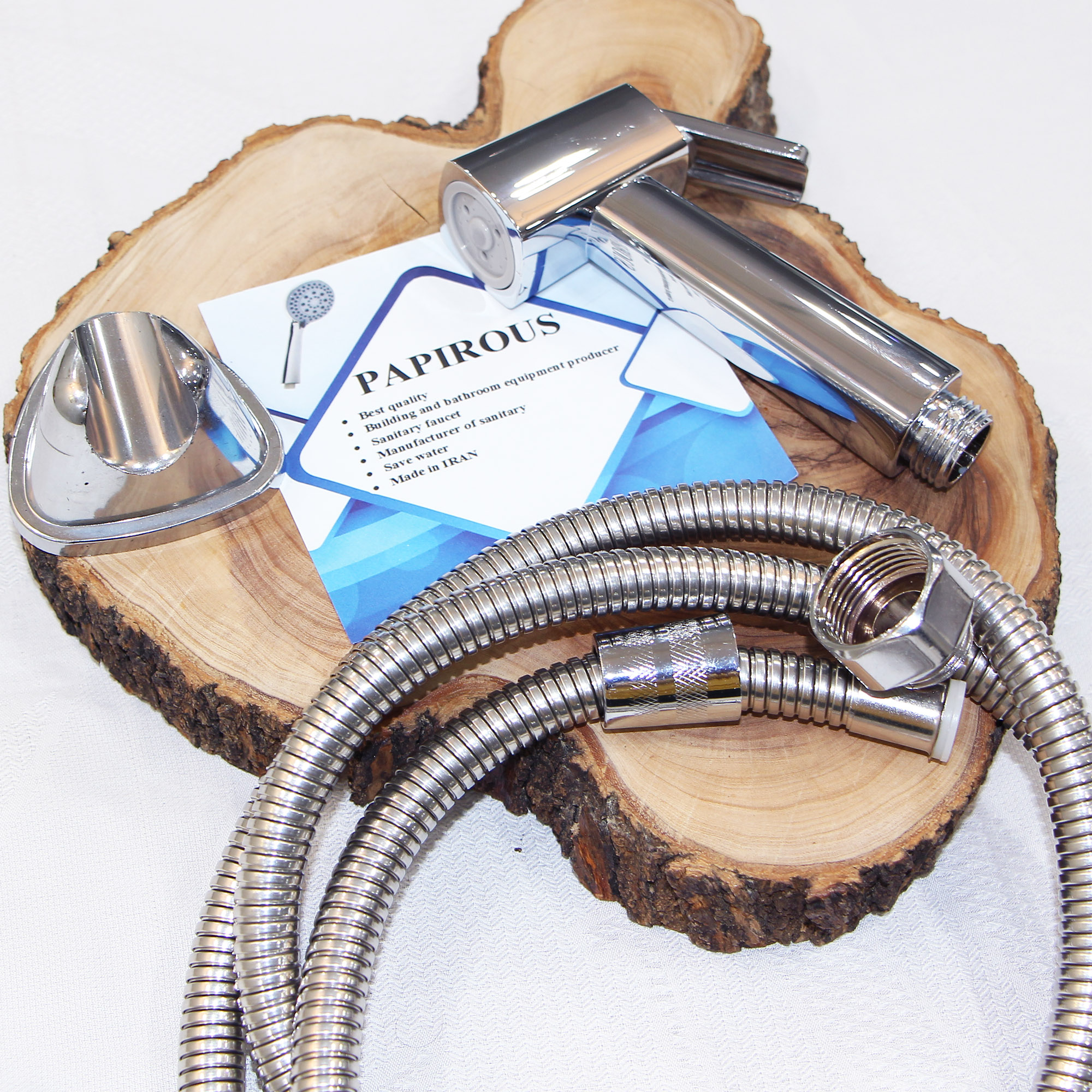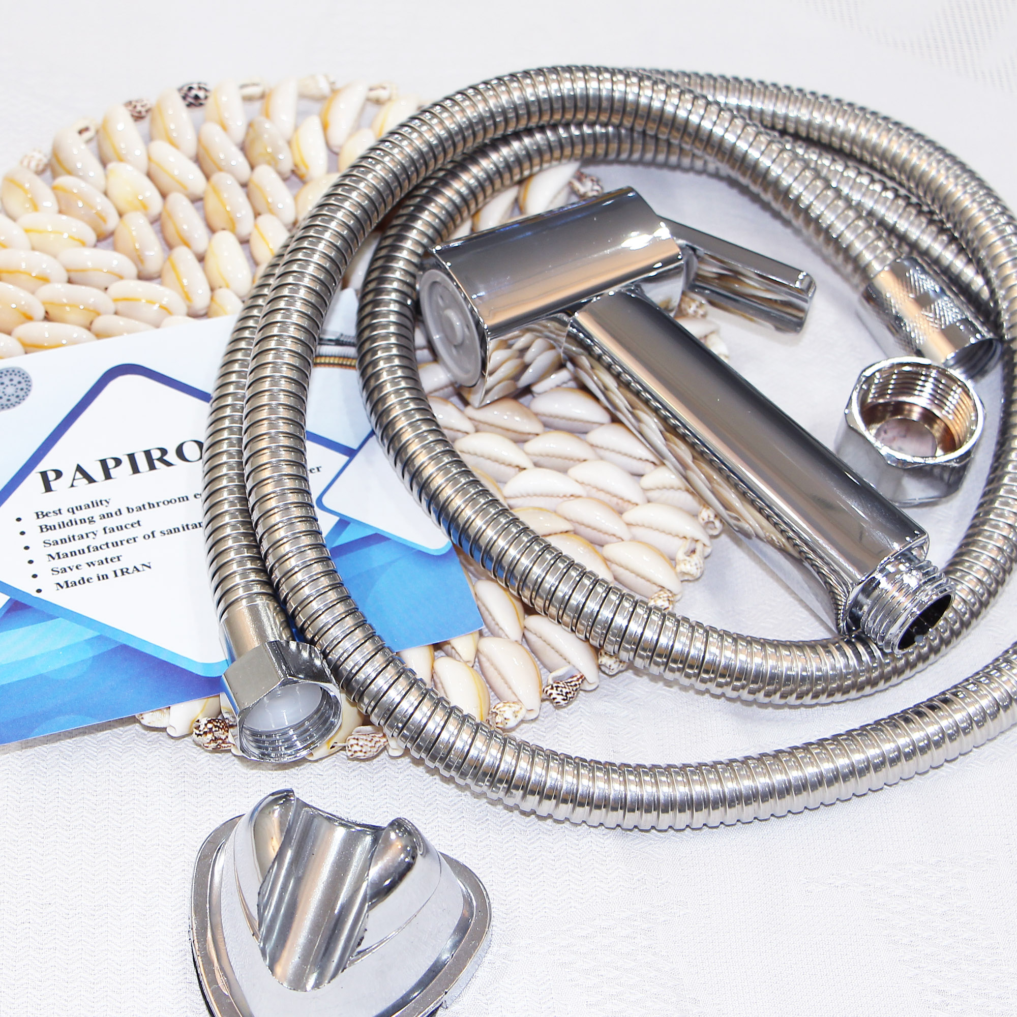 - مورد استفاده برای سرویس بهداشتی و توالت فرنگی - دارای کلید فشاری روی دسته جهت قطع و وصل جریان به صورت مستقل - افزایش دهنده فشار آب - دارای آویز دیواری - صرفه جویی در مصرف آب، روکش استیل ریز بافت، دارای سری تبدیل از جنس ABS قابلیت تحمل کشش مهره فلزی با پوشش نیکل ،دارای قلاب از جنس ABS.