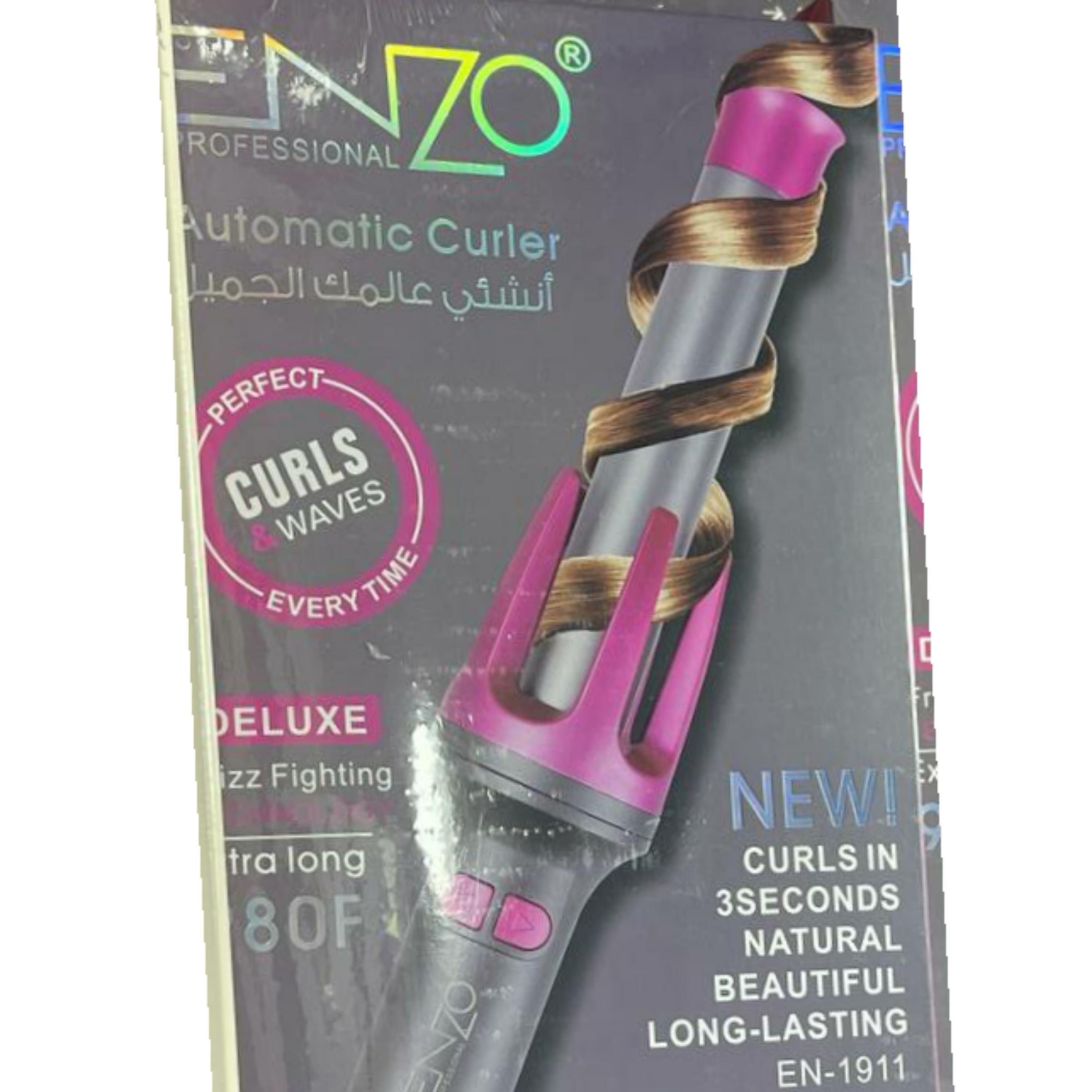 فر مو جادویی انزو مدل EN-1911دارای طراحی ارگونومیک و بسیار خوش دست و سبک می باشد. بدنه دستگاه بسیار محکم و در رنگ صورتی وطوسی در بازار موجود است. این دستگاه کاملا متفاوت و جدید و سریع ترین راه فر کردن موها می باشد. تفاوت این محصول با سایر فر کننده های موجود در بازار در نوع میله آن است. میله دستگاه سرامیکی است که به سمت راست و چپ قابل چرخش می باشد و خیلی سریع موهای شما را فر می نماید. این فر جادویی دارای سیم بلند و حرفه ای و سیم گردان 360 درجه است که حین انجام کار مانور بیشتری به دست شما می دهد.