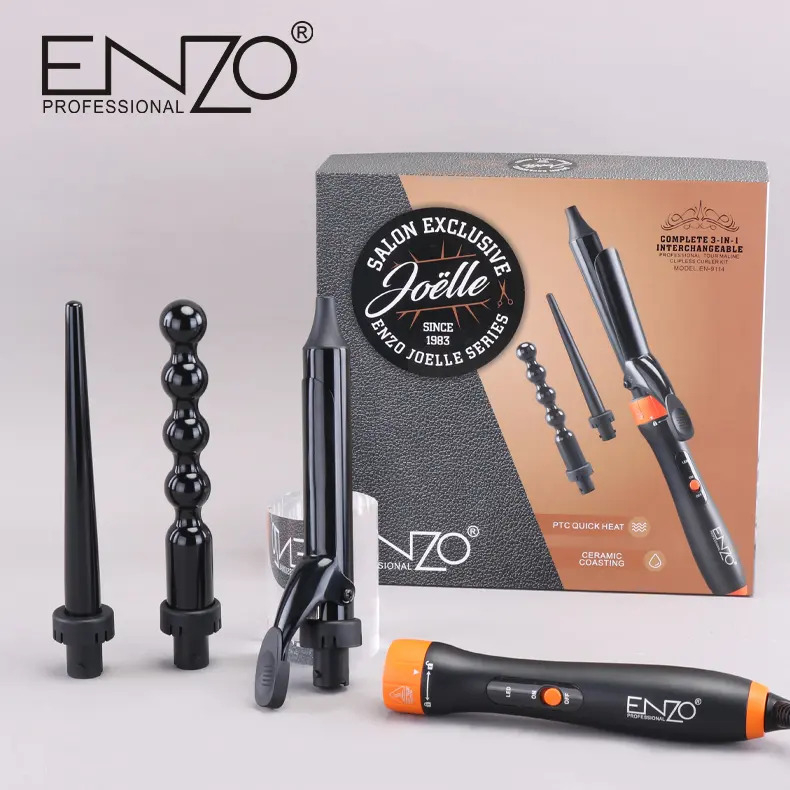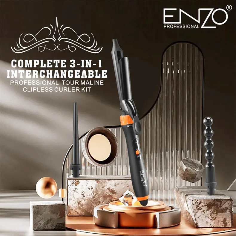 فرکننده 3 در 1 انزوپروفیشینال EN-9114 دارای سه سری قابل تعویض می باشد که می توانید موهای خود را با فرهایی به اندازه 10 تا 20 میلی متر و 30 میلی متر و حلقه هایی زیبا به اندازه 22 میلی متر به صورت مدرن آرایش کنید.