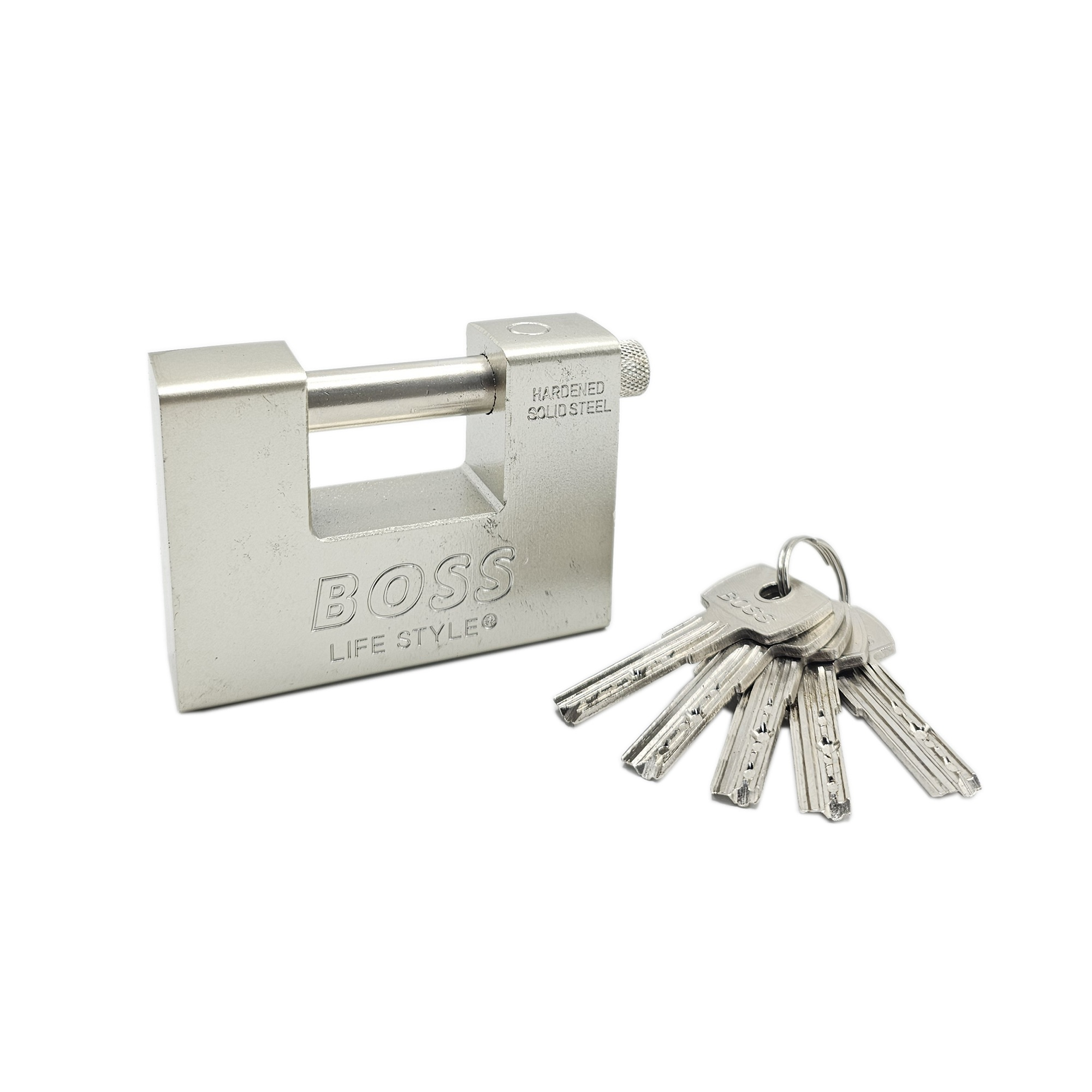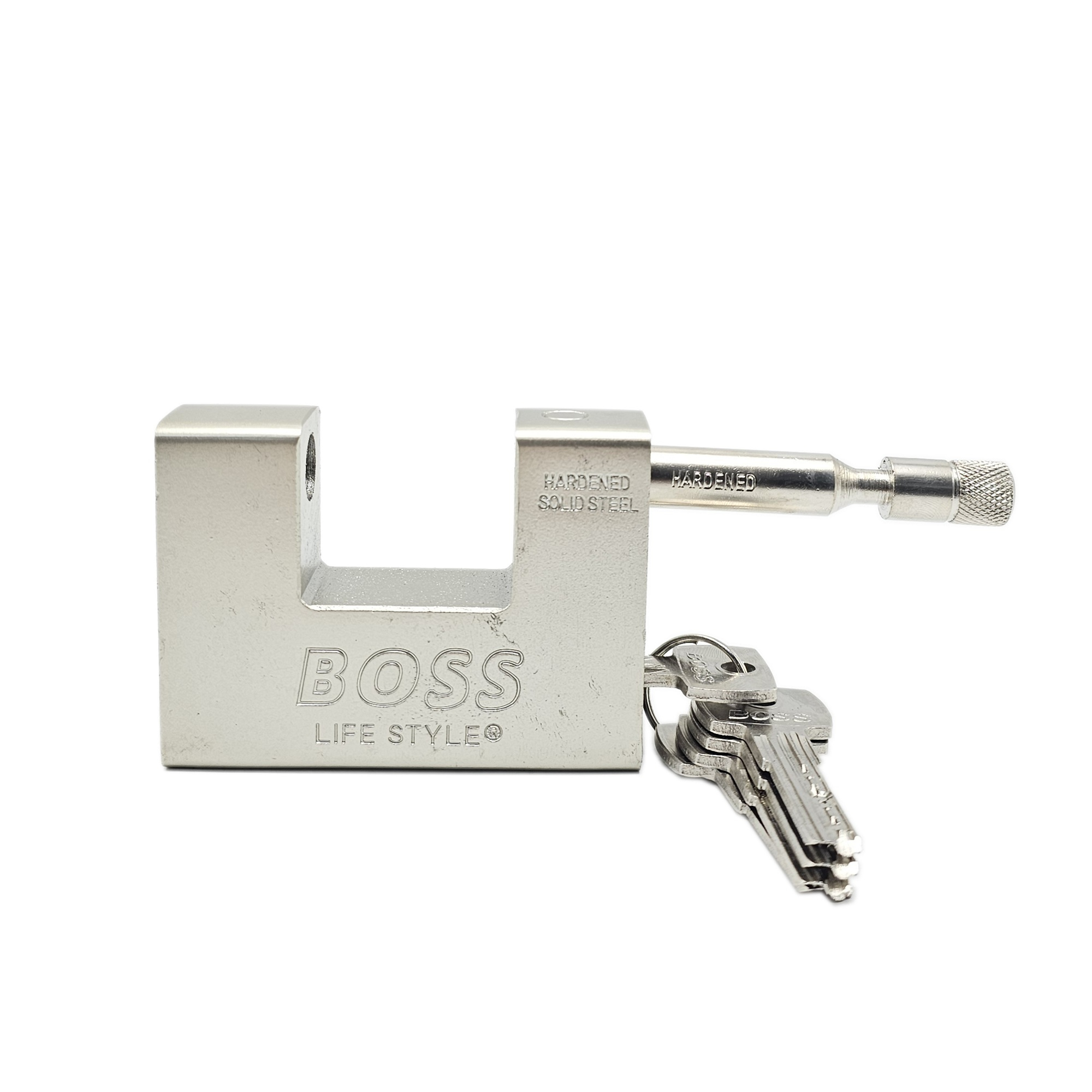 قفل کتابی boss سایز 94 دارای یک بدنه یکپارچه فولادی می باشد مغزی این قفل کاملا برنجی می باشد. میله ی قفل سخت کاری شده و در برابر برش با اره و قیچی ... مقاوم است . مغزی قفل از جنس برنج می باشد که در برابر رطوبت و ساییدگی مقاوم باشد مغزی قفل به گونه ای طراحی شده که کلید های متفرقه داخل قفل نرود . قفل کتابی boss دارای ساچمه قفل شونده از سمت راست میله است این مکانیسم سبب می شود حتی با برش میله با سنگ فرز میله از جای خود در نیاید . این قفل دارای 5 کلید ویژه کامپیوتری می باشد . دهانه قفل 4 سانتی متر می باشد .