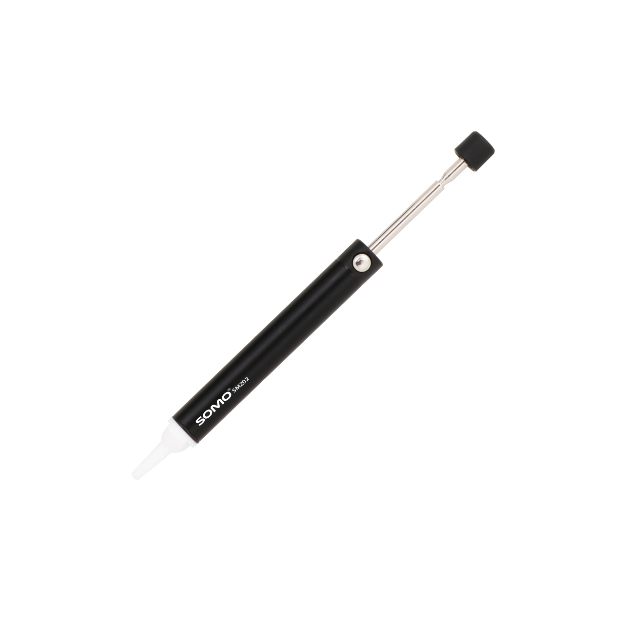 قلع‌کش ازجمله‌ی ابزارهایی است که در زمان لحیم‌کاری و کار با هویه، به کار می‌رود. این مدل به علت سایز کوچک بسیار مناسب جهت کار در روی بردهای SMD می باشد.شرکت «سومو» (SOMO) یکی از شرکت‌هایی است که درزمینه‌ی ساخت هویه و لوازم جانبی آن است. مدل SM202 یکی از محصولات این شرکت است. این محصول یک قلع‌کش با بدنه‌ی فلزی است. حجم و وزن این مدل بسیار مناسب است. عملکرد این ابزار در حد مطلوبی است و به‌راحتی قابل‌استفاده است. مدلSM202 محصولی از شرکت سومو است که از آن برای مکش و برداشتن قلع‌های اضافی استفاده می‌کنند. این مدل با طول 16 سانتی‌متر ساخته‌شده و تنها 24 گرم وزن دارد. بیشترین کاربرد این ابزار در تولید یا تعمیر برد‌های الکتریکی و الکترونیکی است. البته برای مصارف خانگی و انجام لحیم‌کاری در منزل، این محصول کمک زیادی به شما می‌کند. اگر در زمان لحیم‌کاری بخواهید قلع اضافی در محل موردنظرتان را از روی برد (به‌صورت کامل) بردارید، باید از قلع‌کش استفاده کنید. برای به‌کارگیری این محصول ابتدا باید ضامن (پیستون) قلع‌کش را به داخل آن (سیلندر) فشار دهید تا قفل شود. سپس سری هویه را روی قلع اضافی قرار داده و همزمان نوک قلع‌کش را به محل موردنظرتان بچسبانید و دکمه‌ی قلع‌کش را فشار دهید. با فشار دکمه، ضامن قلع‌کش آزاد می‌شود و قلع اضافی به داخل قلع‌کش مکیده خواهد شد. در نظر داشته باشید که نباید زمان تماس نوک قلع‌کش با محل داغ شده، زیاد باشد؛ زیرا باعث آب شدن و تغییر شکل دادن سر قلع کش می‌شود و دیگر نمی‌توان از این محصول استفاده کرد. با استفاده از قلع‌کش مدل SM202 کیفیت کار و لحیم‌کاری شما بیشتر خواهد شد.