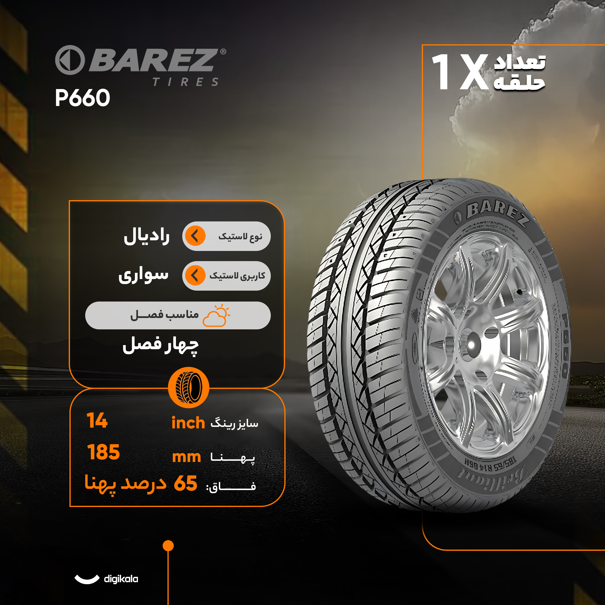 لاستیک خودرو بارز مدل P660 سایز 13 / 65 / 165 میلی‌متر تولید سال 2025 – 1 حلقه