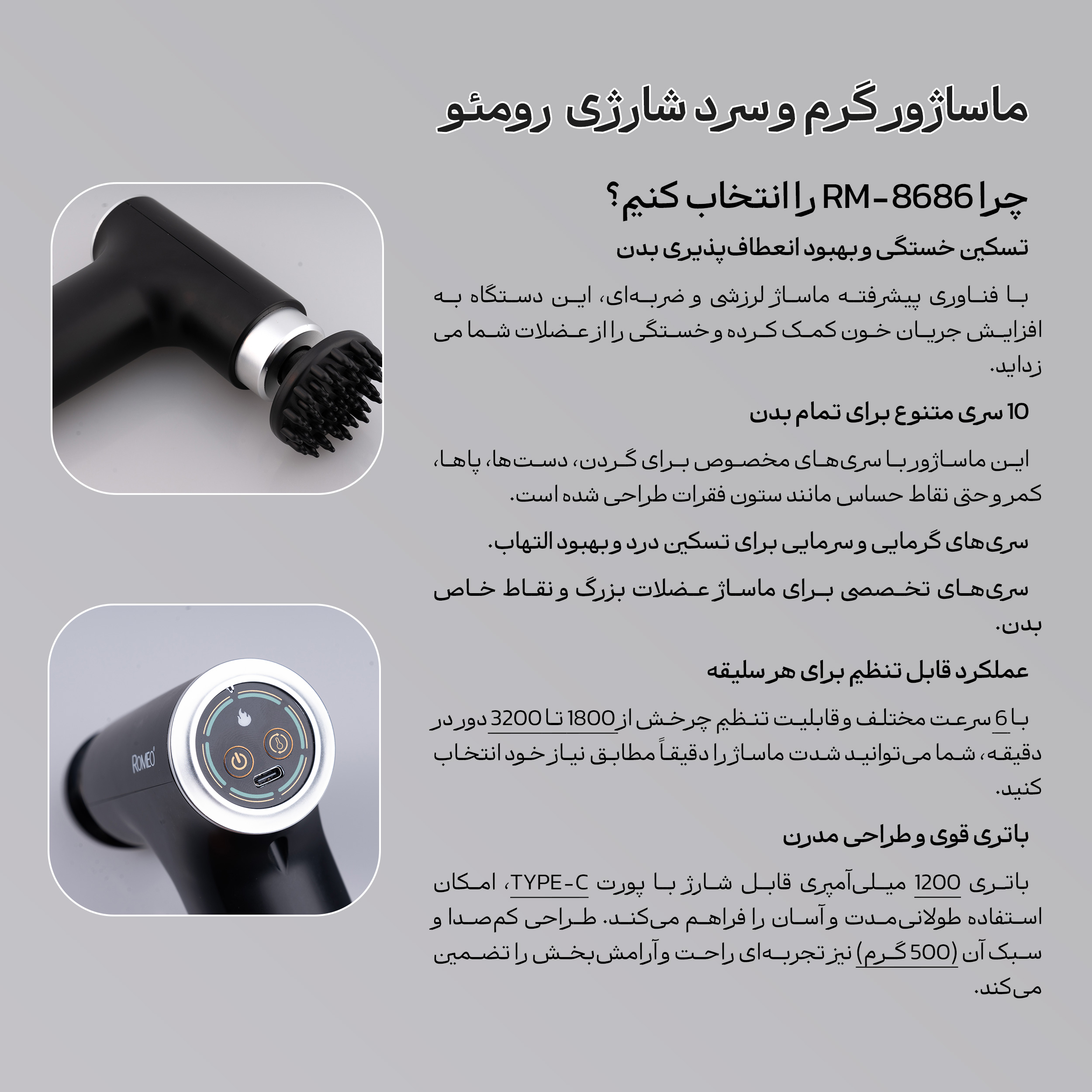 ماساژور رومئو مدل RM-8686، با ویژگی‌های منحصر به فرد خود، گزینه‌ای عالی برای کسانی است که به دنبال بهبود کیفیت زندگی و سلامتی خود هستند.