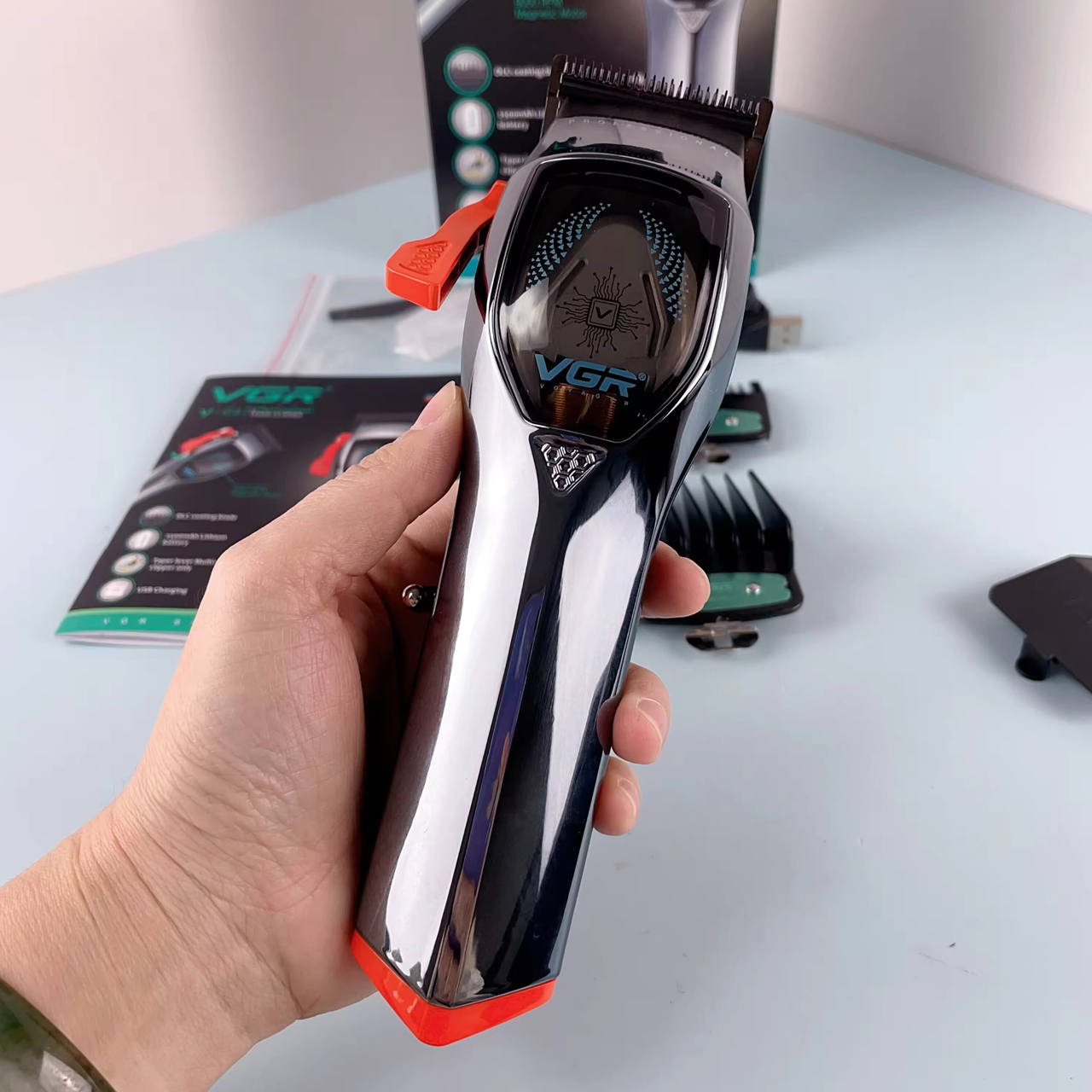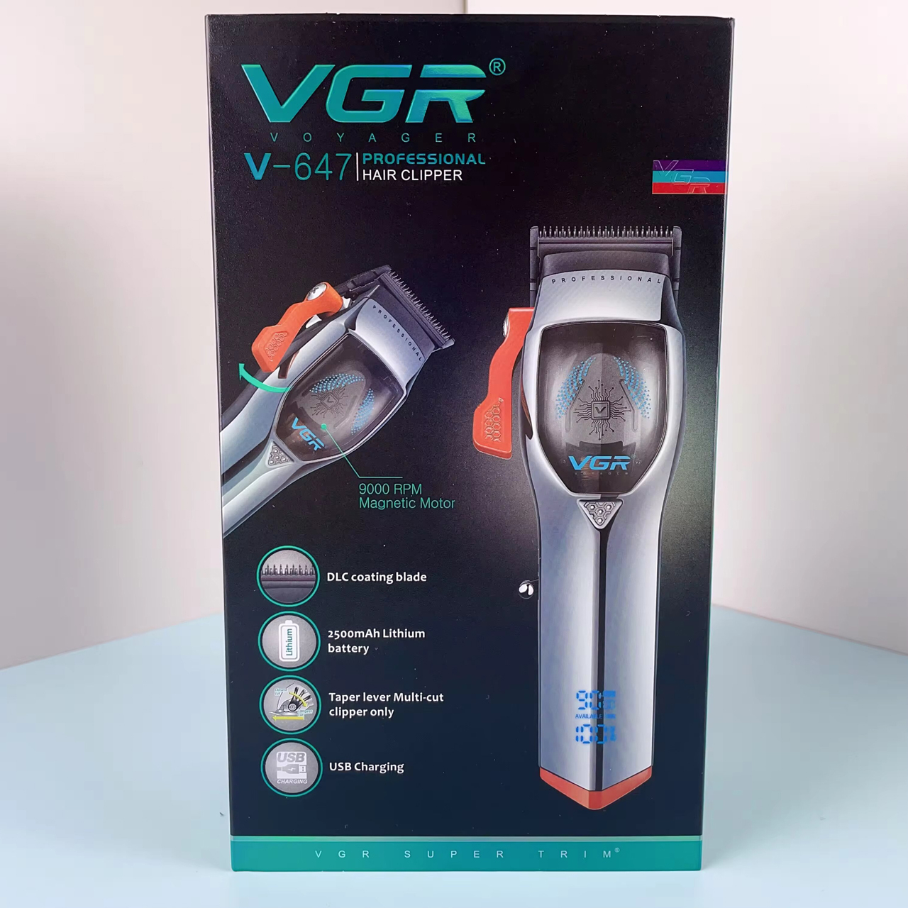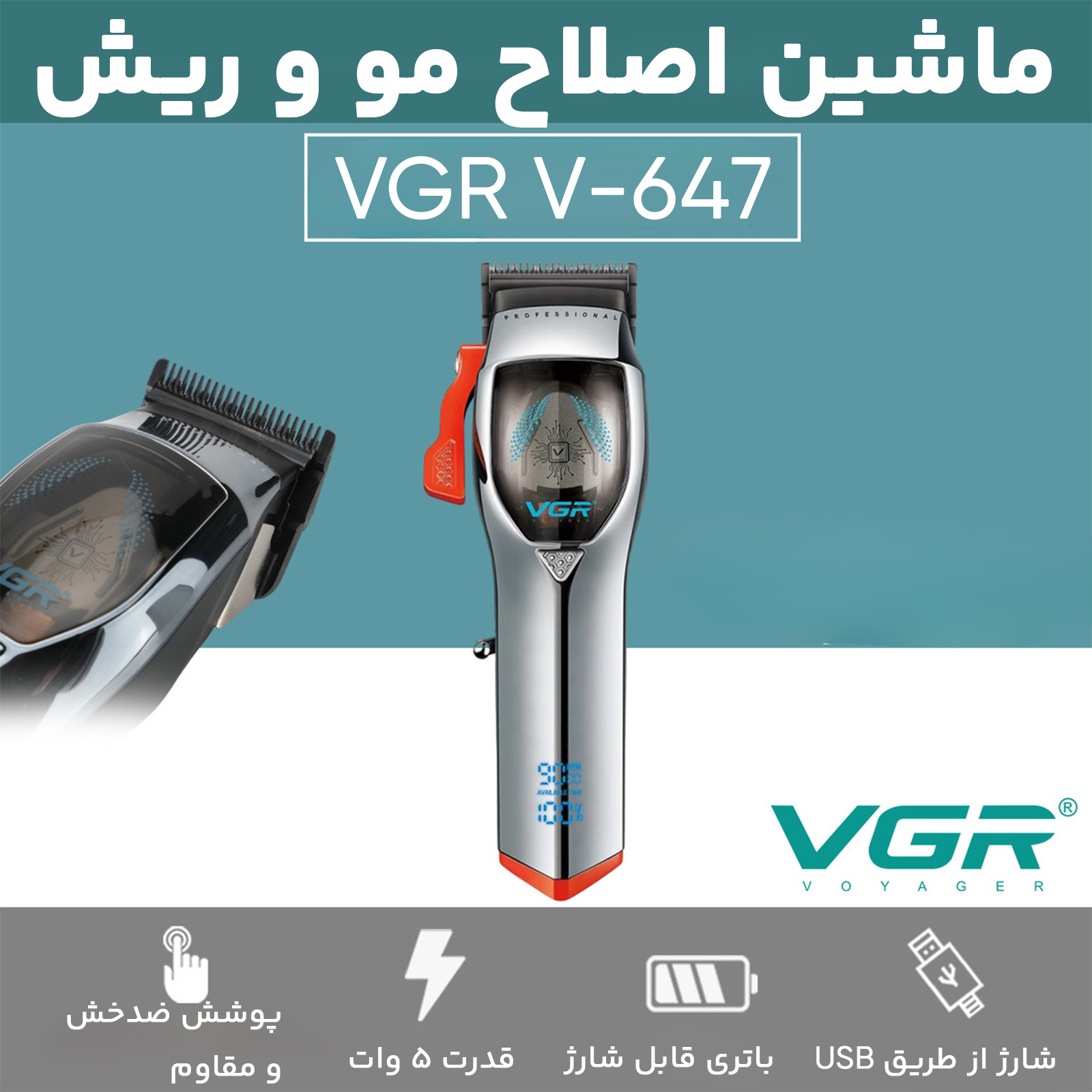 ماشین اصلاح موی سر وی جی آر مدل v-647 یک ماشین اصلاح حجم زن با طراحی به غایت زیباست. دارای یک موتور مغناطیسی است که باعث می شود در طول کار گرم نشود و به طور مداوم بتوان از آن استفاده کرد. دارای یک باطری باتری 2500 میلی آمپر و به دور موتور 7000 دور در دقیقه تجهیز شده است. نشانگر دور موتور و وضعیت باطری شما را از وضعیت موتور و باطری مطلق می سازد. متناسب با نیاز برق دستگاه یک آداپتور همراه دستگاه قرار داده شده تا از بورد و باطری دستگاه محافظت شود. علاوه بر این یک شانه اصلاح و سه عدد شانه راهنما، برس تمیزکننده دستگاه و روغن روان کننده ارائه شده است.