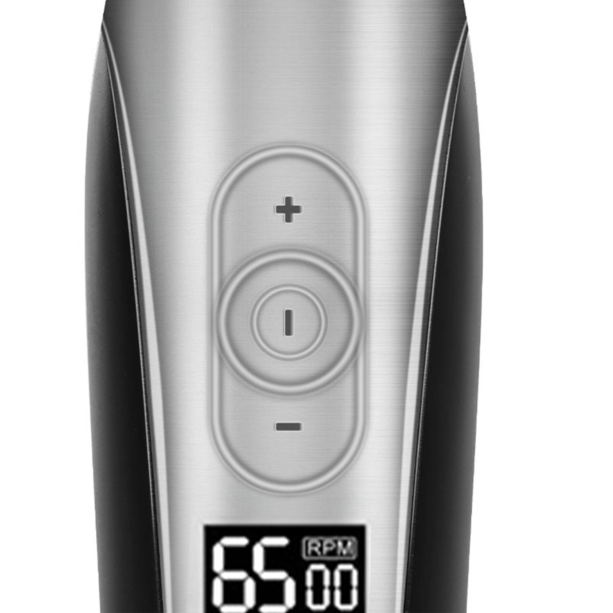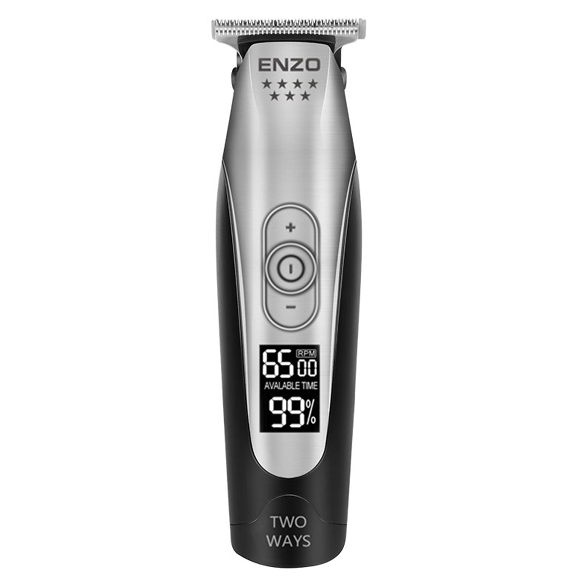 ماشین اصلاح خط زن مدل EN-5017 از شرکت نام آشنای انزو پروفیشینال یکی از قویترین و خوش دستترین ماشینهایی است که کمتر شبیه آن را خواهید دید. طراحی بدنه ارگونومیک و رنگبندیهای زیبا، نمایشگر LED و موتور با توان بالای 5 وات با قابلیت توربو 6500 دور در دقیقه دلیل این ادعا است. به کمک کلیدهای +/- روی بدنه میتوان سرعت چرخش و اصلاح را از 5000 تا 6500 دور تغییر داد. سایز کوچک و وزن کم 135 گرمی این دستگاه باعث شده تا EN-5017 گزینه مناسبی برای استفاده خانگی و سالنهای اصلاح باشد. از دیگر خصوصیتهای این دستگاه باتری لیتیومی 1200 میلی آمپری و قابلیت نگهداری شارژ به مدت 120 دقیقه (2 ساعت) و شارژ شدن در عرض 90 دقیقه است. همچنین شارژ این محصول به وسیله کابل USB است. آنچه روی بدنه این دستگاه خواهید دید: کلید خاموش و روشن، نمایشگر میزان شارژ و سرعت موتور است. شما میتوانید با کابل USB این ماشین را با لپتاپ و حتی پاوربانک خود شارژ کنید. به همراه این محصول 3 شانه 1،2،3 میلیمتری ارائه شده است.