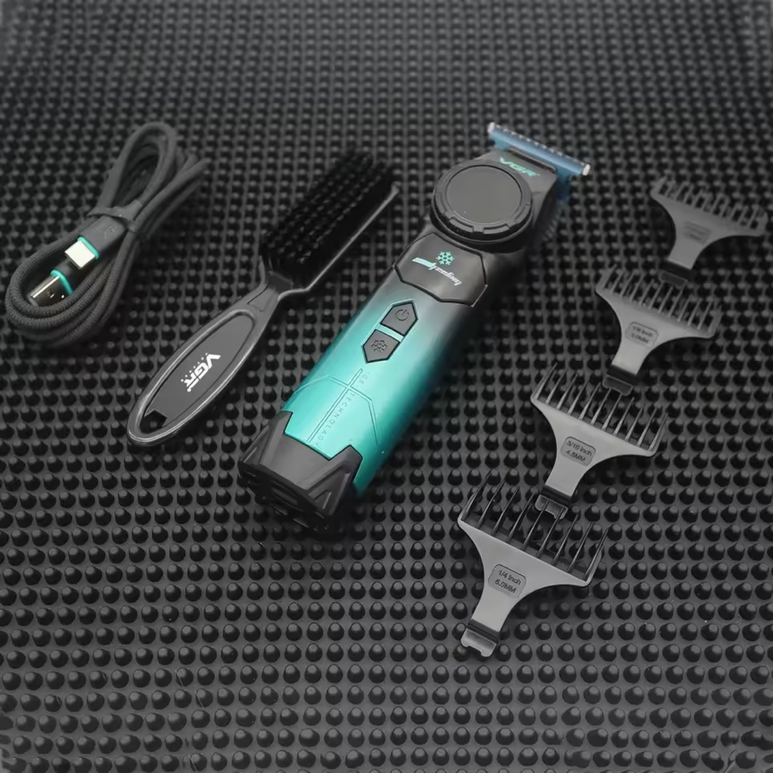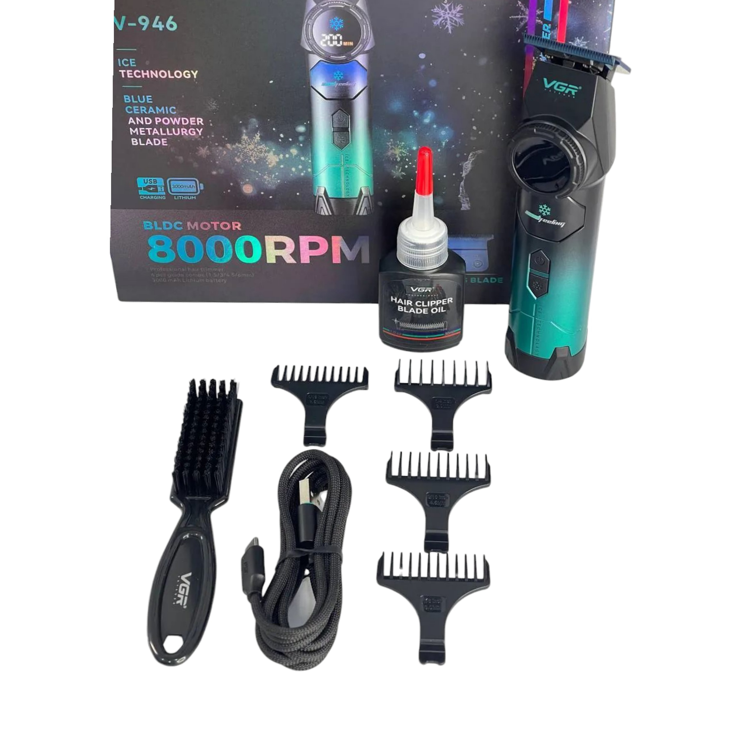 این ماشین اصلاحترکیبی از قدرت دوام زیبایی و فناوریهای نوین است که اصلاحی روان دقیق و بدون آسیب به پوست را به شما ارائه میدهد. در نگاه اول طراحی بدنه ارگونومیک و مدرن ۹۴۶-۷ VGR توجه شما را جلب میکند بدنه خوش فرم و سبک آن به گونه ای ساخته شده که به خوبی در دست قرار میگیرد و مانع از خستگی دست در استفاده طولانی مدت میشود این دستگاه به تیغه های خاص از جنس بلو سرامیک مجهز است که علاوه بر تیزی فوق العاده ، مقاومت بالایی در برابر زنگ زدگی و سایش دارند. فناوری پودر متالورژی به کار رفته در ساخت تیغه ها نیز باعث افزایش دوام و طول عمر آنها میشود. از طرف دیگر حضور فناوری ICE TECHNOLOGY در این دستگاه به معنای خنک نگه داشتن تیغه ها در هنگام استفاده است. این ویژگی نه تنها باعث افزایش راحتی و جلوگیری از داغ شدن دستگاه میشود بلکه نقش مهمی در افزایش طول عمر تیغه ها و حفظ تیزی آنها در طولانی مدت دارد. ماشین اصلاح وی جی آر مدل ۹۴۶-۷ به یک موتور BLDC بسیار قدرتمند با توان ۸۰۰۰ دور در دقیقه مجهز شده است. این موتور علاوه بر سرعت بالا صدای کم و لرزش کمتری نسبت به موتورهای معمولی دارد. به همین دلیل استفاده از آن در محیطهای حرفه ای مانند آرایشگاه ها کاملاً ایده آل است قدرت موتور به شما امکان میدهد تا حتی موهای ضخیم و پرپشت را نیز به راحتی و بدون کشیدگی کوتاه کنید. یکی از ویژگی های برجسته این مدل باتری لیتیومی ۳۰۰۰ میلی آمپر ساعت آن است که ظرفیت بسیار بالایی دارد. این باتری تنها در مدت زمان ۳ ساعت به طور کامل شارژ میشود و پس از آن امکان ۲۰۰ دقیقه استفاده مداوم را به کاربر میدهد. چنین عملکردی موجب میشود که کاربران بتوانند بدون نگرانی از خالی شدن شارژ چندین بار اصلاح کامل را با یک بار شارژ انجام دهند. همچنین قابلیت شارژ با کابل USB باعث میشود که بتوانید دستگاه را به راحتی در منزل آرایشگاه یا حتی سفر شارژ کنید. نمایشگر دیجیتال LED روی بدنه ماشین اصلاح خط زن وی جی آر مدل ۹۴۶- VR میزان شارژ باقی مانده و وضعیت عملکرد دستگاه را به وضوح نمایش میدهد این قابلیت برای جلوگیری از خاموش شدن ناگهانی دستگاه در حین کار بسیار کاربردی است. طراحی دکمه ها و ارگونومی بدنه نیز به گونه ای است که کنترل دستگاه بسیار ساده و روان خواهد بود.