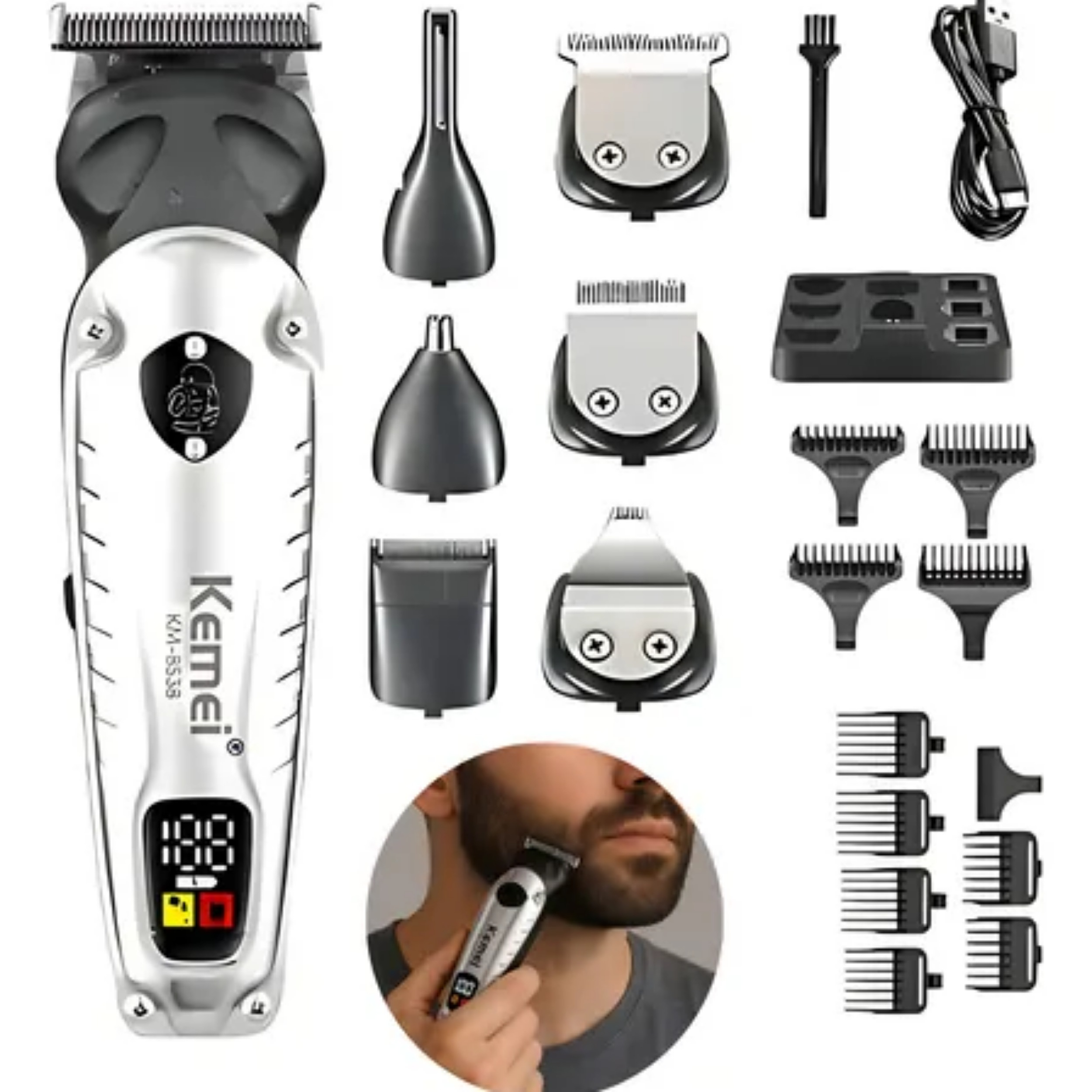 - اقلام همراهتریمر km-۸۵۳۸ ، محافظ تیغه ، 7 عدد فیش تریمر مختلف، 4عدد شانه اصلاح ۱، ۳، ۵، ۷ میلیمتر و 4عدد شانه اصلاح ۳، ۶، ۹، ۱۲ میلیمتر و ۲عدد اینچ ، کابل شارژر USB ، برس تمیز کننده