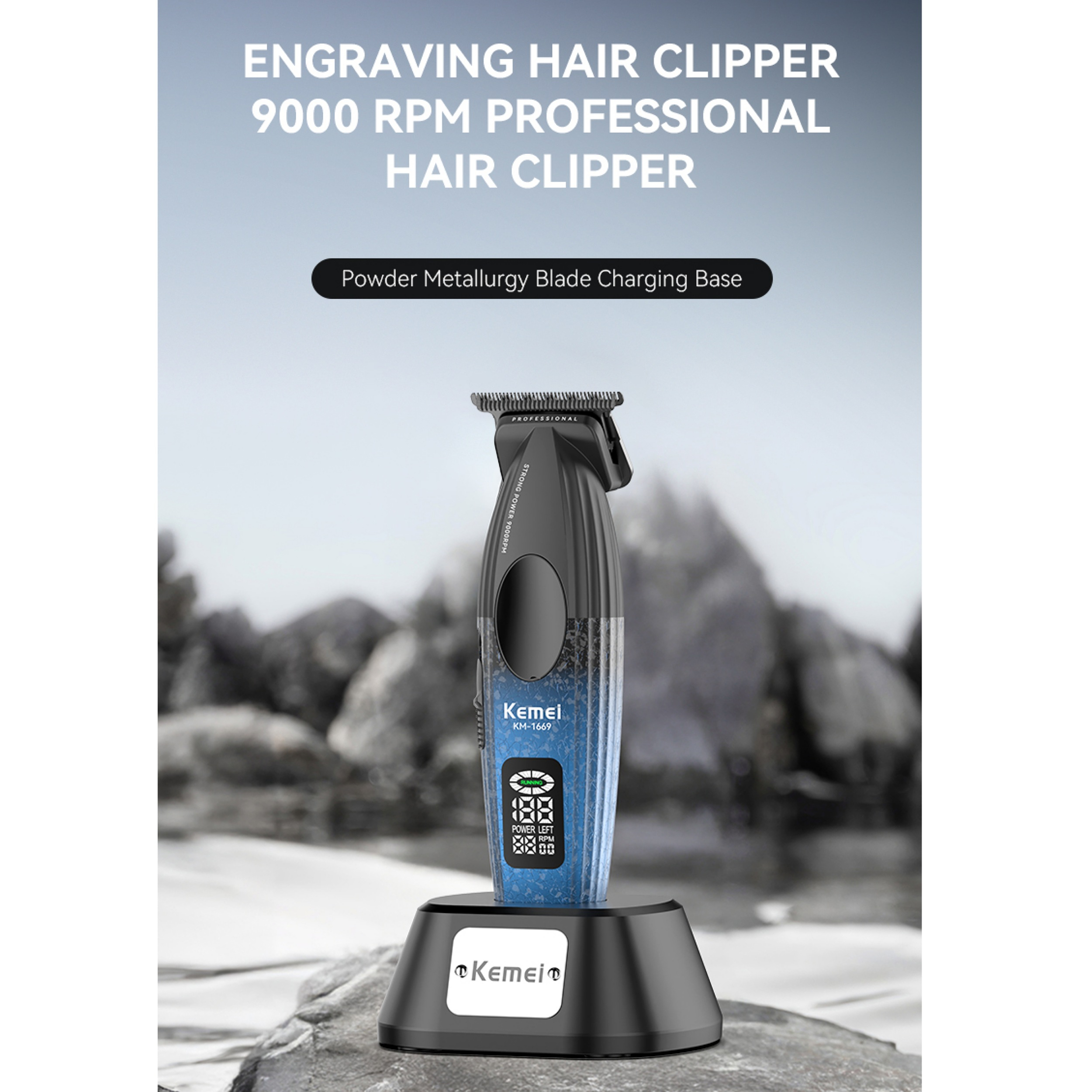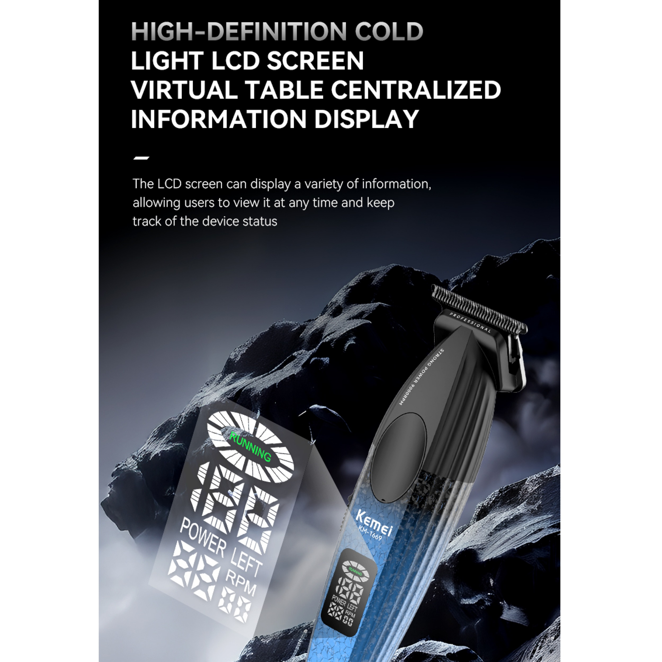 با توجه به اینکه صفحه نمایش LED نه تنها می‌تواند به وضوح میزان شارژ باقی مانده و وضعیت در حال اجرا را نشان دهد، بلکه سرعت موتور را نیز نمایش می‌دهد. تیغه‌های سرامیکی و متالورژیکی قدرتمند جدید ارتقا یافته، اصلاح مو، ریش، صورت، خط ریش، کناره‌های گوش و موهای بدن را آسان می‌کنند. کِمِی ۱۶۶۹ از بدنه‌ی جدیدی با طرح آتشفشانی انفجاری و ضد لغزش ساخته شده است که بافت بدنه را بهبود می‌بخشد و به شما امکان می‌دهد هنگام کوتاه کردن مو از زیبایی آن لذت ببرید. همچنین انتخابی عالی برای کیت اصلاح مردانه برای تولد، سالگرد ازدواج و … است.