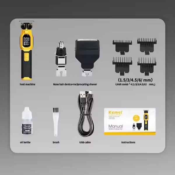 یک ماشین اصلاح چندکاره (خطزن / صفرزن / تریمر ریش و همچنین سری بینی/گوش) است که برای استفادهٔ خانگی و نیمهحرفهای طراحی شده — بدنهٔ ارگونومیک، صفحهنمایش و تیغههای ضدزنگ از مشخصات بارز آناند. باتری: لیتیومی 2000 میلیآمپرساعت با شارژ از طریق USB. زمان شارژ کامل حدود 2–2.5 ساعت و زمان کار پس از شارژ بین ~180 تا 200 دقیقه ذکر شده است. موتور قابل تنظیم که در منابع سرعتهایی مانند 6000 یا 7000 دور در دقیقه گزارش شده است (قابلیت تنظیم یکی از ویژگیهاست). تیغهها: تیغهٔ استیل ضدزنگ (در برخی لیستها تیغهٔ T-shape یا تیغهٔ قابل جدا شدن و شستوشوپذیر گزارش شده). بعضی مدلها هم با پوششهایی ادعا میکنند ضدحساسیت یا مناسب پوستهای حساس هستند—اما عبارت «ضد حساسیت» معمولاً به تیغهٔ استیل ضدزنگ یا طراحی ارگونومیک اشاره دارد؛ اگر پوست خیلی حساسی دارید بهتر است تست کوچک انجام دهید. چند شانه با اندازههای مختلف، سری تِریمِر خطزن (T-blade)، سری اصلاح بینی/گوش و لوازم جانبی مثل برس تمیزکاری، روغن و کابل شارژ USB در بستهبندی معمول است. برخی نمونهها دارای نمایشگر وضعیت باتری/سرعت و نشانگر شارژ هستند. چندکاره و کاربردی — میتوانید برای خطزنی، صفر کردن، کوتاهکردن ریش و اصلاح گوش/بین استفاده کنید. تیغهٔ استیل ضدزنگ که عمر و مقاومت مناسبی دارد.
