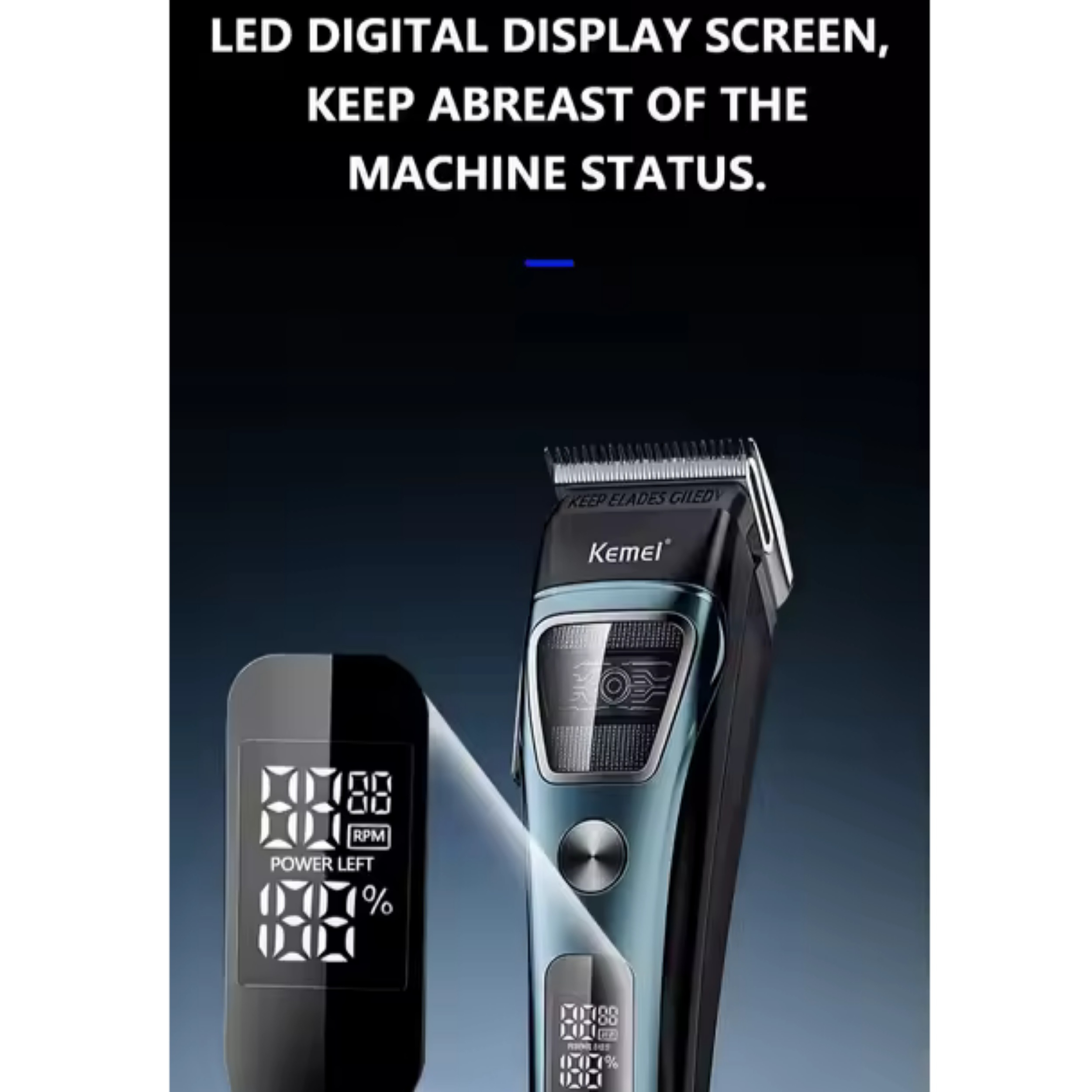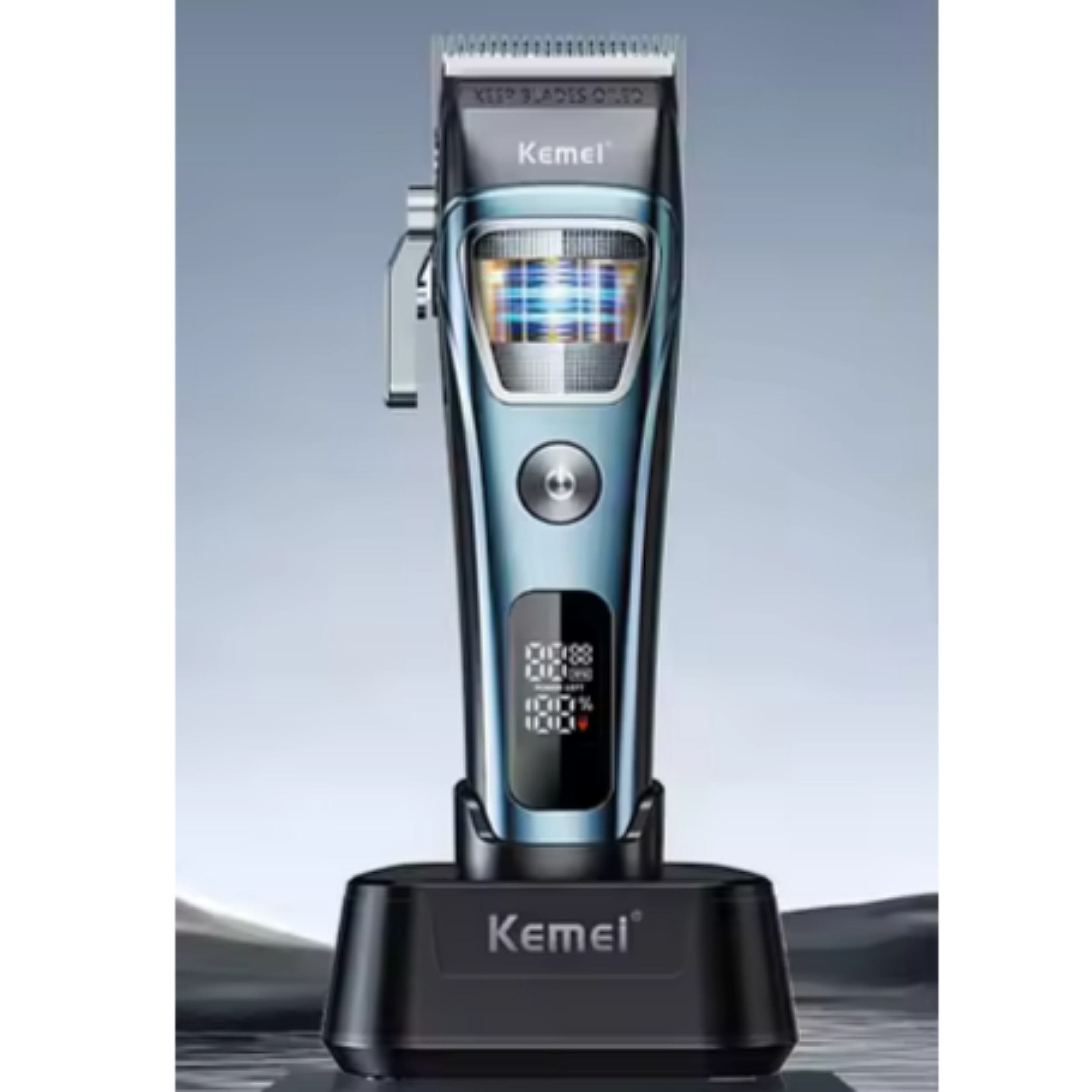 باتری و پایه شارژ با ظرفیت بالا 2500 میلی‌آمپر ساعت ، صفحه نمایش LED هوشمند ، تنظیمات قابل تنظیم دو سرعته ، درجه حرفه‌ای برای آرایشگران ، مدل: کِمِی KM-1911 ، شانه : 1.5/3/4.5/6/9/12 میلی‌متر ، باتری لیتیومی ۲۵۰۰ میلی‌آمپرساعت ، شارژ ۳.۵ ساعته ، ۱۸۰ دقیقه استفاده ، ماشین اصلاح موی Kemei با موتور بدون برس روتور خارجی KM-1911  ، سرعت: ۷۵۰۰ دور در دقیقه ، توان: ۵ وات ، جنس تیغه متحرک: سرامیک ، سیستم پیشرفته DLC و تیغه محو شونده ،موتور بدون جاروبک پرقدرت (5 وات)