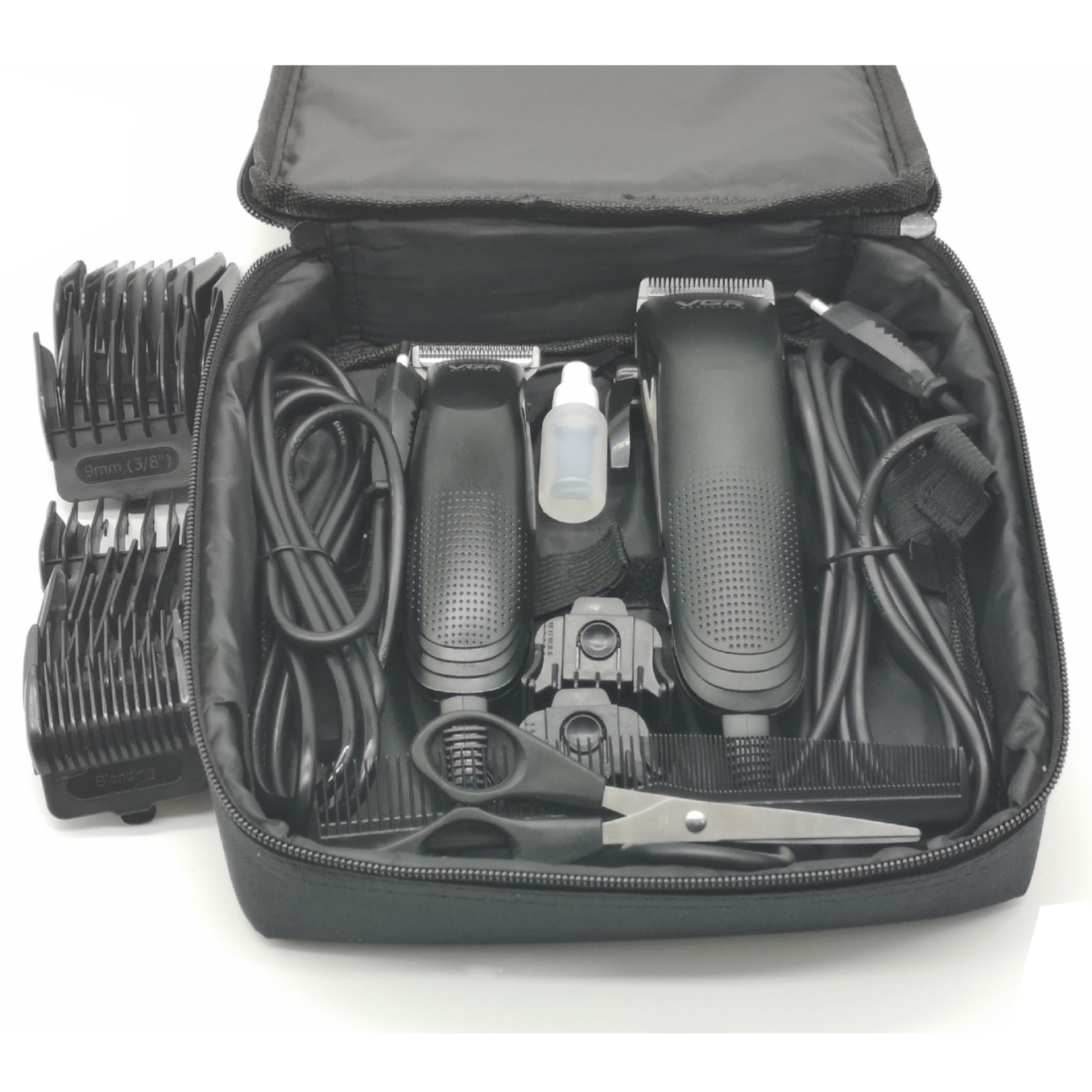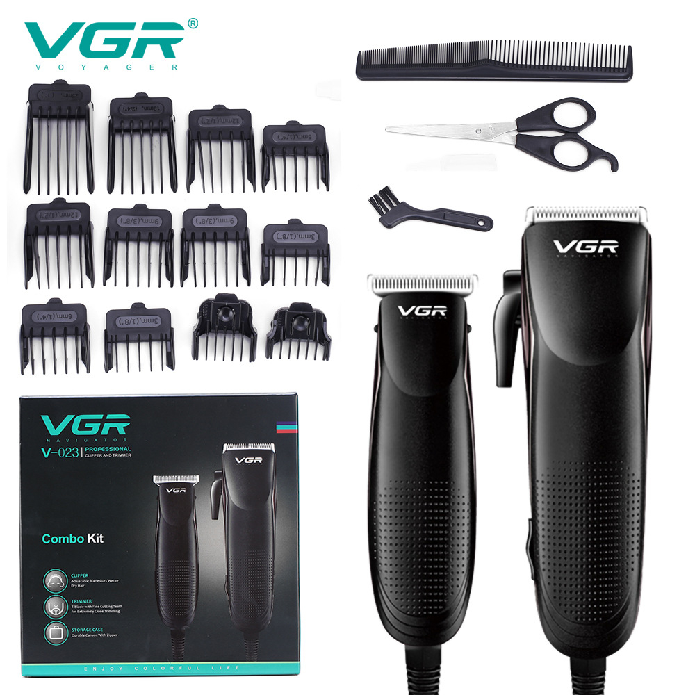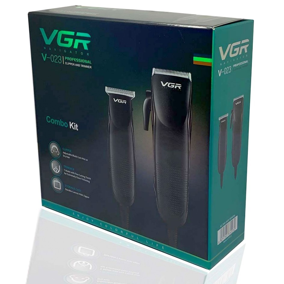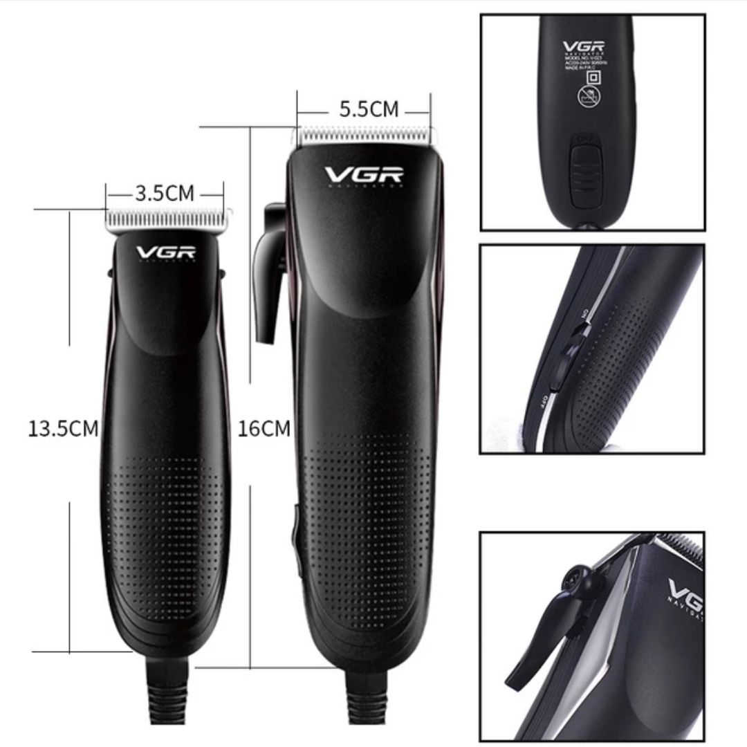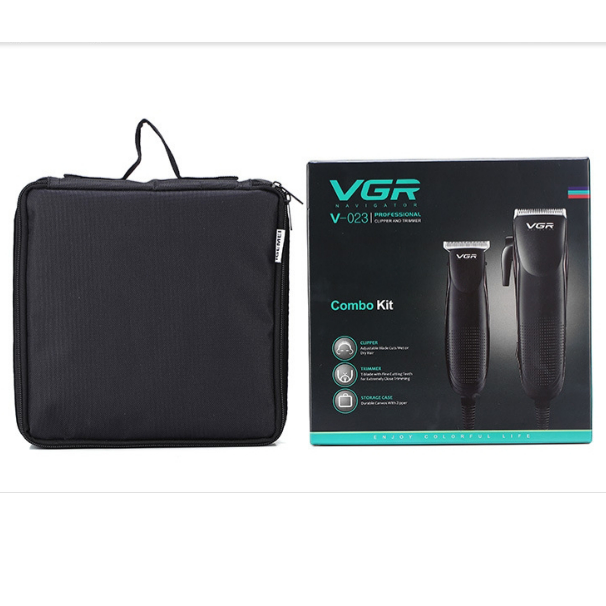 ماشین اصلاح وی جی ار مدل 023 دارای یک ویژگی خاص میباشد که دارای 2 عدد دستگاه ماشین اصلاح با کیفیت در دو سایز کوچک و بزرگ میباشد.ماشین اصلاح وی جی ار مدل 023 یک پکیج کامل ست اصلاح شامل یک کیف بزرگ 2 عدد دستگاه 1 عدد قیچی یک کاور برای ارایشگاه میباشد.دستگاه بزرگ تر برای سر و گرفتن حجم موی زیاد و دستگاه کوچک برای صورت و خط زن میباشد.دستگاه بزرگ دارای 10 عدد شانه است که 2 عدد شانه بسیار ویژه مخصوص خط گوش و ریش میباشد که شامل چپ و راست است که در عکس موجود هست.دستگاه کوچک نیز دارای 2 عدد شانه متحرک با قابلیت تغییر سایز میباشد.هر دو دستگاه با سیم کار میکند.