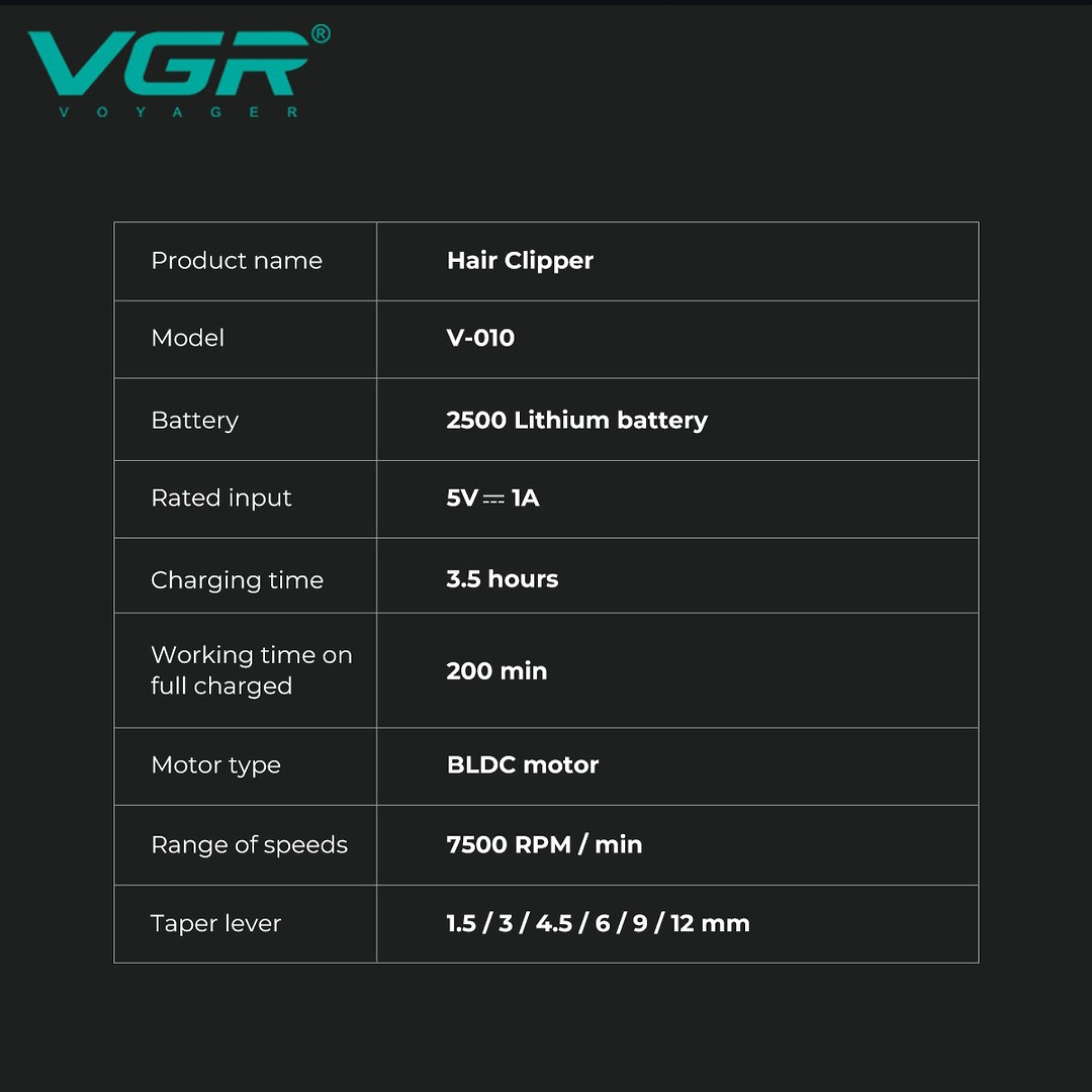 ماشین اصلاح VGR مدل V-010 یک گزینه عالی برای افرادی است که به دنبال یک دستگاه کارآمد و حرفهای برای اصلاح موهای خود هستند. با توجه به کیفیت ساخت، قابلیتهای متنوع و قیمت مناسب، این دستگاه میتواند نیازهای مختلف شما را برآورده کند. اگر به دنبال دستگاهی با عملکرد بالا و طراحی مناسب هستید، VGR V-010 انتخابی مناسب خواهد بود.