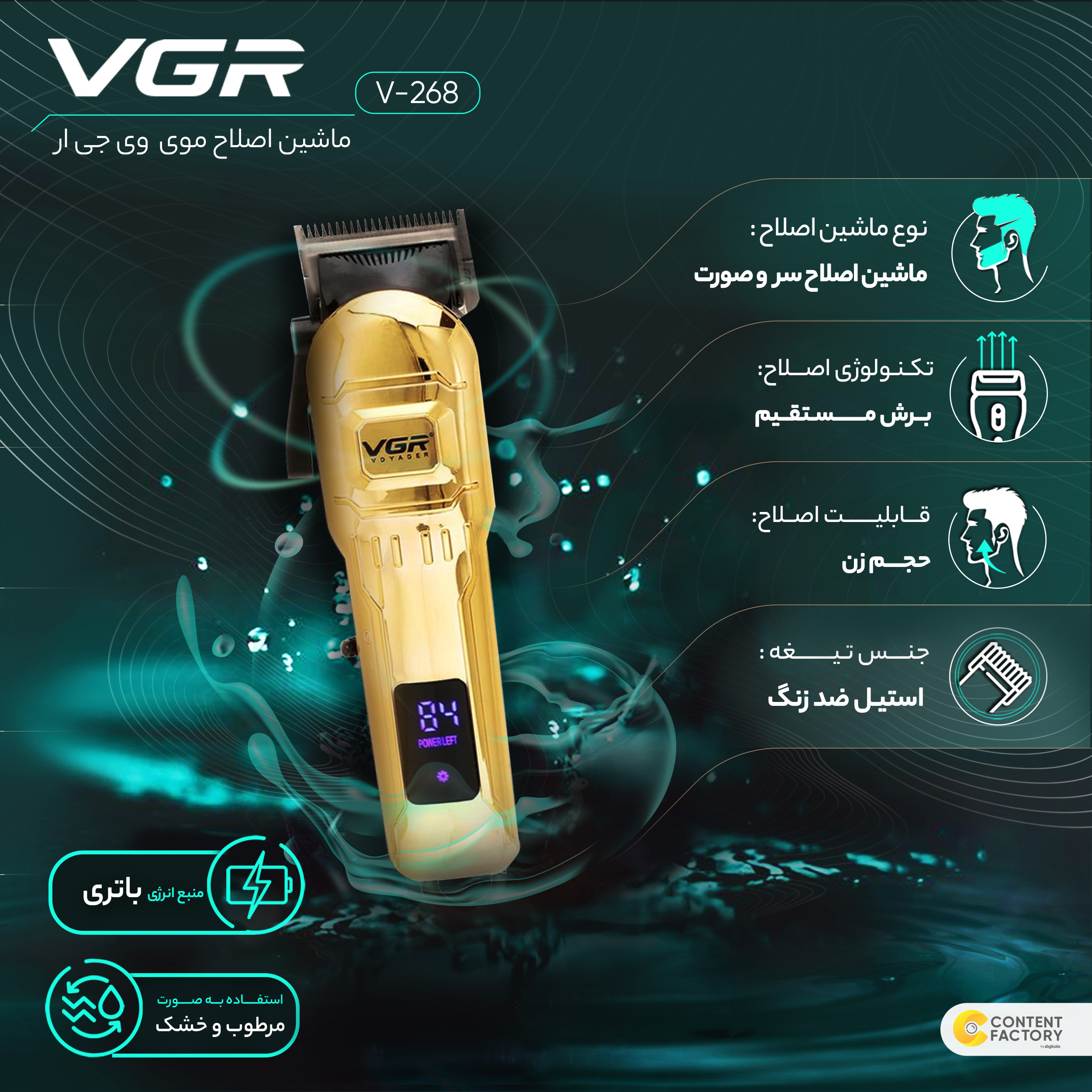 ماشین اصلاح موی سر و صورت وی جی ار مدل V-268 یک ابزار حرفه ای و پیشرفته برای اصلاح موهای شما است. این ماشین با تیغه های استیل ضد زنگ و تکنولوژی برش مستقیم، قابلیت اصلاح با دقت و صافی بالا را دارد. شما می توانید با استفاده از 4 عدد شانه که همراه ماشین هستند، طول و حجم موهای خود را در سایز های 0.8 تا 9 میلیمتر تنظیم کنید. این ماشین با باتری قابل شارژ کار می کند و با 180 دقیقه شارژ، می توانید 200 دقیقه از آن استفاده کنید. برند وی جی ار یک برند معروف و پرطرفدار از چین است که با تولید محصولات با کارایی بالا و قیمت مناسب، رضایت مشتریان خود را جلب کرده است. همچنین با خرید این ماشین، شارژر، روغن، برس تمیزکننده و محافظ نیز به شما تعلق خواهد گرفت. یکی از ویژگی های منحصر به فرد این ماشین، دارا بودن موتور قدرتمند 5 وات با گشتاور 7000 دور در دقیقه است که با تولید 55 دسی بل بسیار کاربردی است. تیغه ظریف این ماشین نیز با قابلیت اصلاح دقیق، به شما کمک می کند تا سبک های جدید و خلاقانه روی صورت خود بسازید. پس دیر نکنید و همین حالا این ماشین اصلاح کاربردی را سفارش دهید.