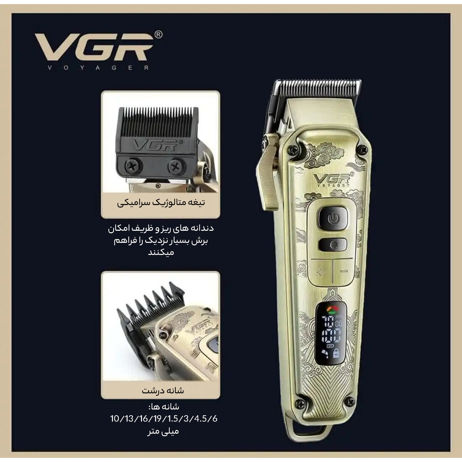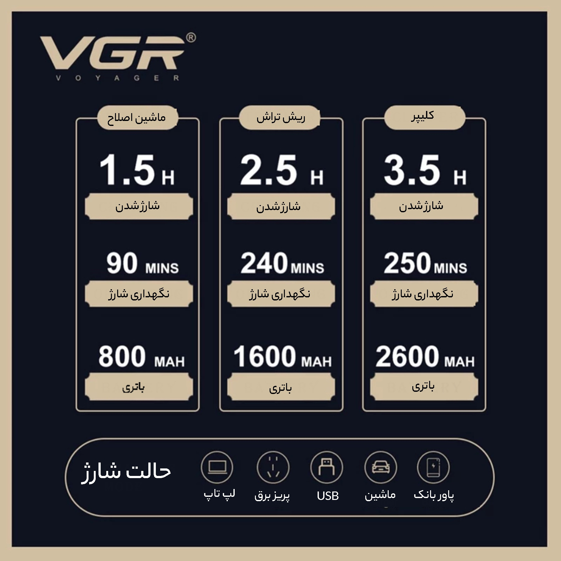 ماشین اصلاح موی سر و صورت وی جی آر مدل V-642، یک مجموعه سه عددی حرفه‌ای است که به شما این امکان را می‌دهد تا با دقت و راحتی موهای خود را اصلاح کنید. این ست شامل یک ماشین اصلاح، یک خط زن و یک حجم زن است که به شما این امکان را می‌دهد تا به راحتی و با کیفیت بالا، موهای خود را مدیریت کنید. طراحی ارگونومیک و ابعاد مناسب (۱۳ × ۸ × ۲۰ سانتی‌متر) این دستگاه‌ها، احساس راحتی را در حین استفاده برای شما فراهم می‌آورد. وزن ۵۳۰ گرمی این ماشین اصلاح، کنترل و کارایی بیشتری را در حین اصلاح به شما می‌دهد. تیغه‌های کربن استیل، سرامیک و استیل ضد زنگ این دستگاه‌ها با قابلیت اصلاح از ۱ تا ۵ میلی‌متر، برش‌های تمیز و دقیقی را ارائه می‌دهند و به شما کمک می‌کنند تا به ظاهری آراسته و مرتب دست یابید.