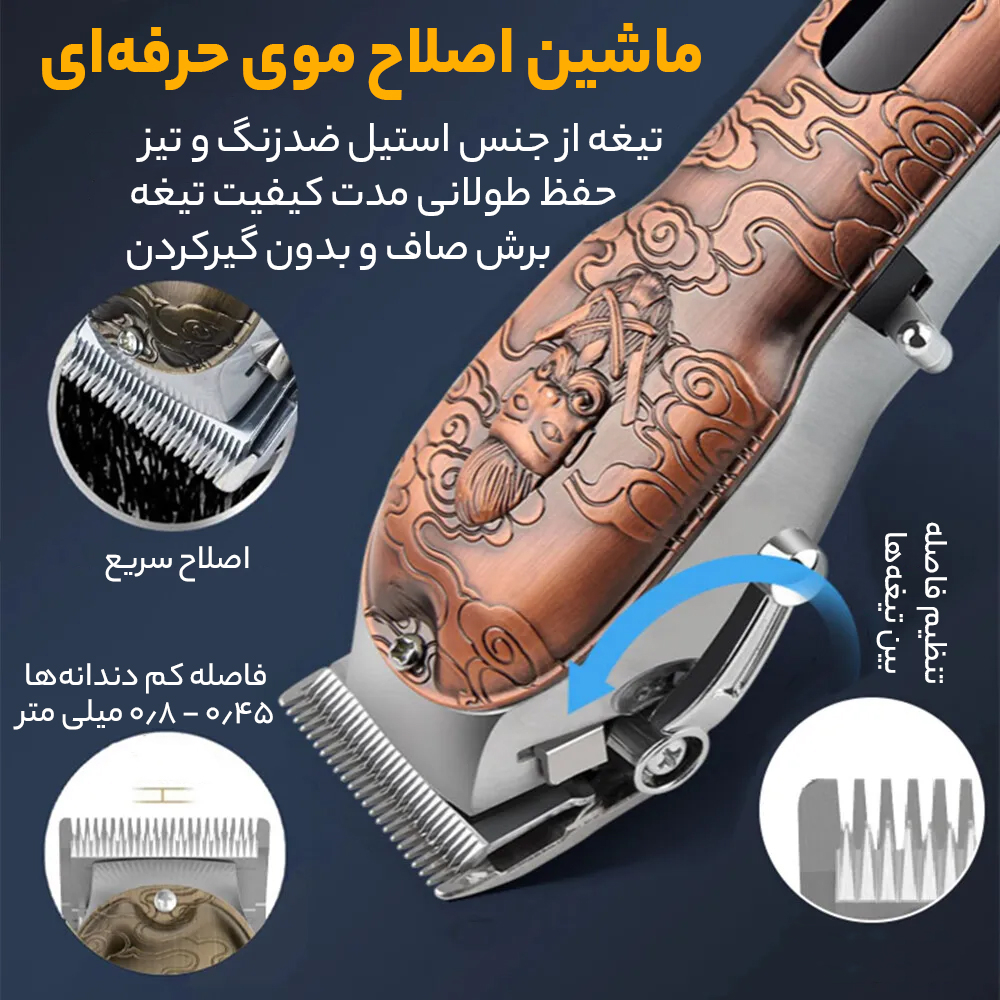 ماشین اصلاح حرفه ای کیمی مدل KM-2623 دارای یک موتور اللکترومغناطیسی قدرتمند، پیشرفته و بی صدا می باشد که بدون تولید گرما و صدای اضافی سرعت و قدرت قابل توجهی ارائه می دهد. به دلیل سر و صدای کم و تیغه های امن، برای کوتاه کردن موی کودکان یا نوپا نیز بسیار مناسب است.