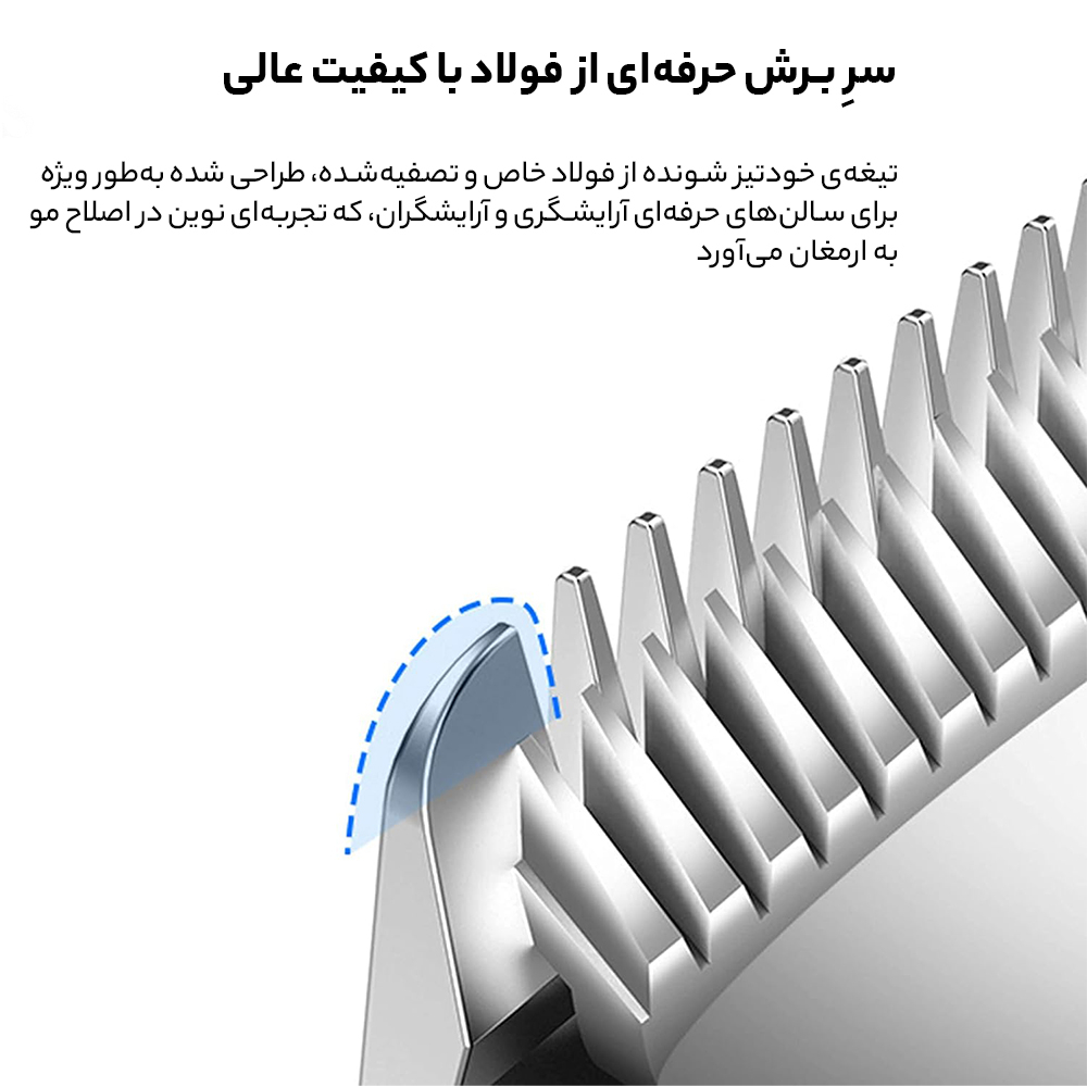 پایه ماشین اصلاح - برس تمیز کننده - 4 عدد شانه ماشین اصلاح - روغن ماشین اصلاح - کابل شارژ USB