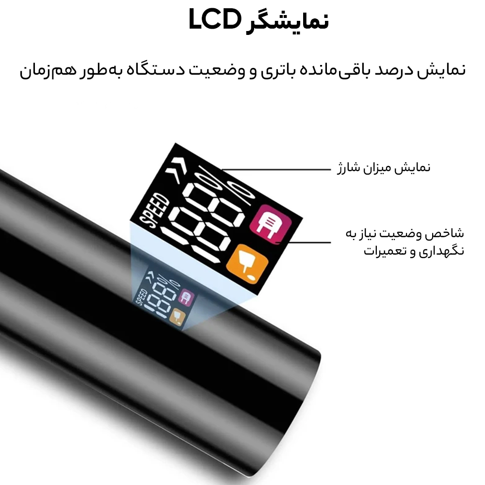این ماشین اصلاح دارای نمایشگر LED است که درصد باتری و همینطور یادآور شارژ و روغن کاری در آن نمایش داده می شود.